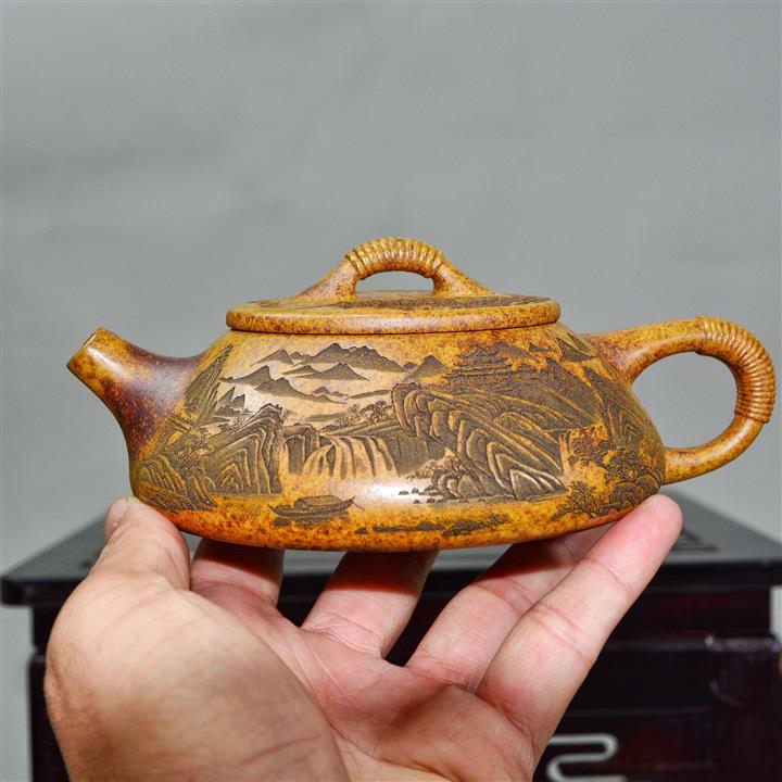 原礦古烏泥太平有象刻繪茶壺POT7790
