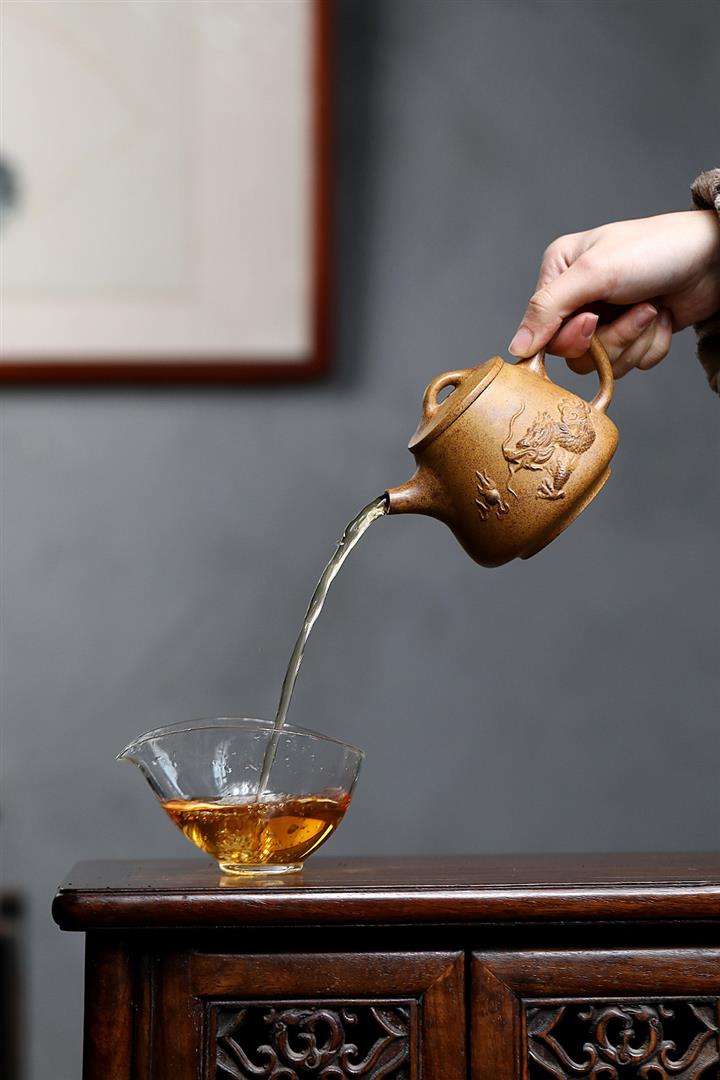 【泥料特點】砂土氣重,似淳實農民,日久使用,漸露鋒芒,養成變化,溫潤莊重。紫砂是壹種雙重氣孔結構的多孔性材質,氣孔微細,密度高。用紫砂壺沏茶,不失原味,且香不渙散,得茶之真香真味。紫砂使用越久,壺身色澤越發光亮照人,氣韻溫雅。紫砂壺長久使用器身會因撫摸擦拭,變得越發溫潤光澤。