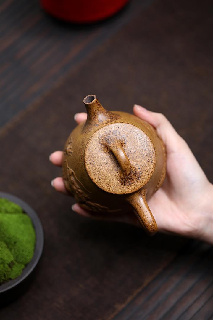 全手工刻繪桂花段泥紫砂壺玉枕壺 Pot3526