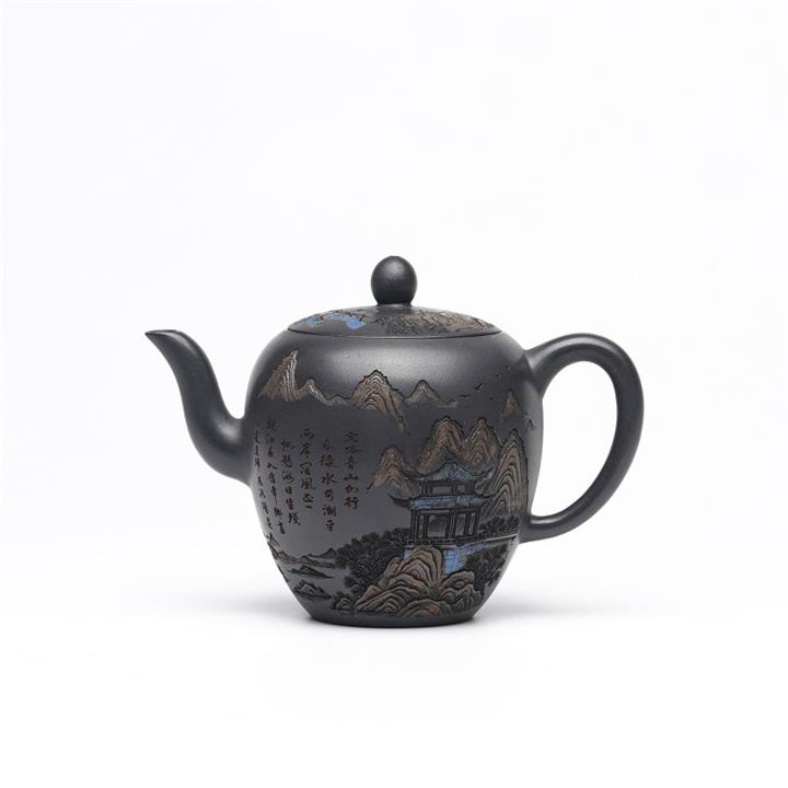 原礦紫砂松華青段子冶石瓢茶壺POT7313