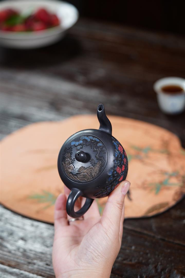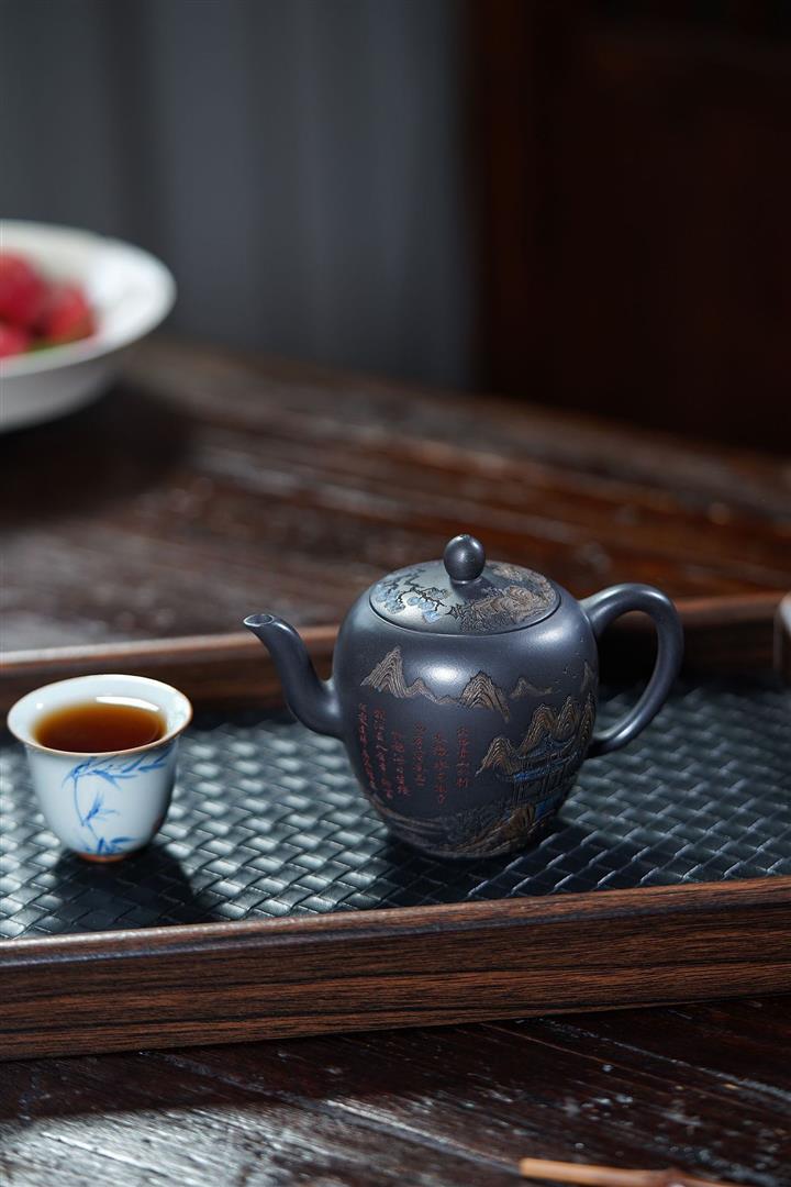 【作品介紹】此款壺形線條流暢,壺把,壺嘴,壺身壹氣呵成栩栩如生,是收藏把玩的好壺,泥料色澤古樸典雅,日久使用,漸露鋒芒,養成變化快,溫潤莊重,用其泡茶,使用的年代久,壺身就溫潤,泡出來的茶湯也就醇郁芳馨。