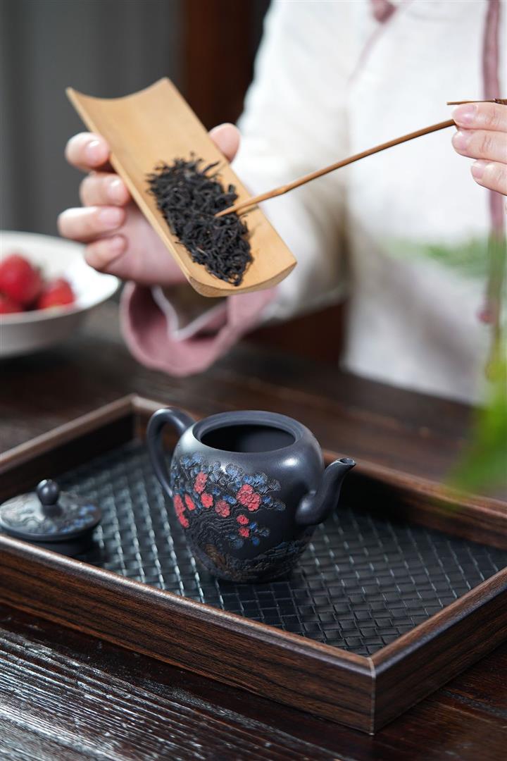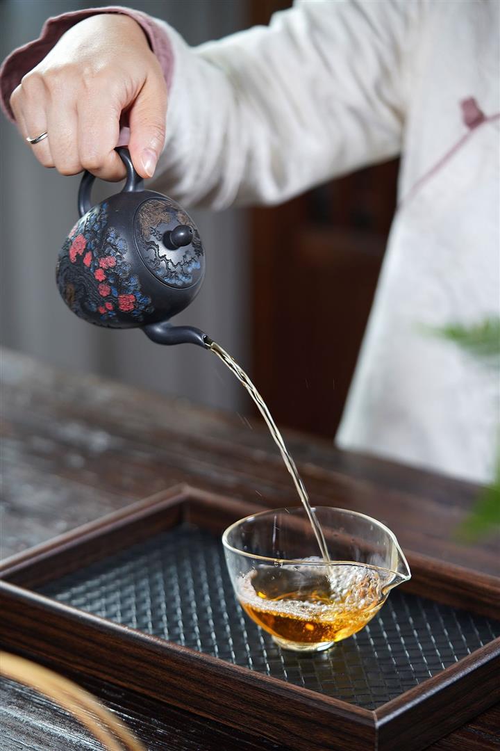 【泥料特點】砂土氣重,似淳實農民,日久使用,漸露鋒芒,養成變化,溫潤莊重。紫砂是壹種雙重氣孔結構的多孔性材質,氣孔微細,密度高。用紫砂壺沏茶,不失原味,且香不渙散,得茶之真香真味。紫砂使用越久,壺身色澤越發光亮照人,氣韻溫雅。紫砂壺長久使用器身會因撫摸擦拭,變得越發溫潤光澤。