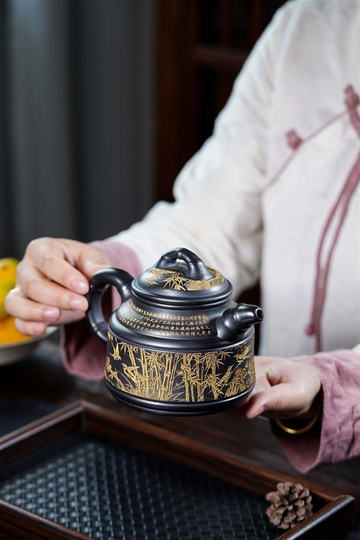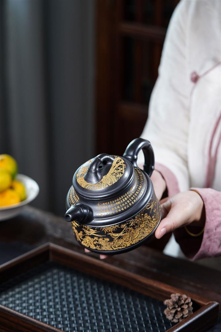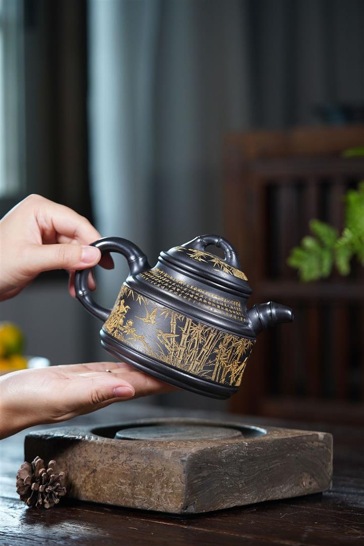 【作品介紹】此款壺形線條流暢,壺把,壺嘴,壺身壹氣呵成栩栩如生,是收藏把玩的好壺,泥料色澤古樸典雅,日久使用,漸露鋒芒,養成變化快,溫潤莊重,用其泡茶,使用的年代久,壺身就溫潤,泡出來的茶湯也就醇郁芳馨。