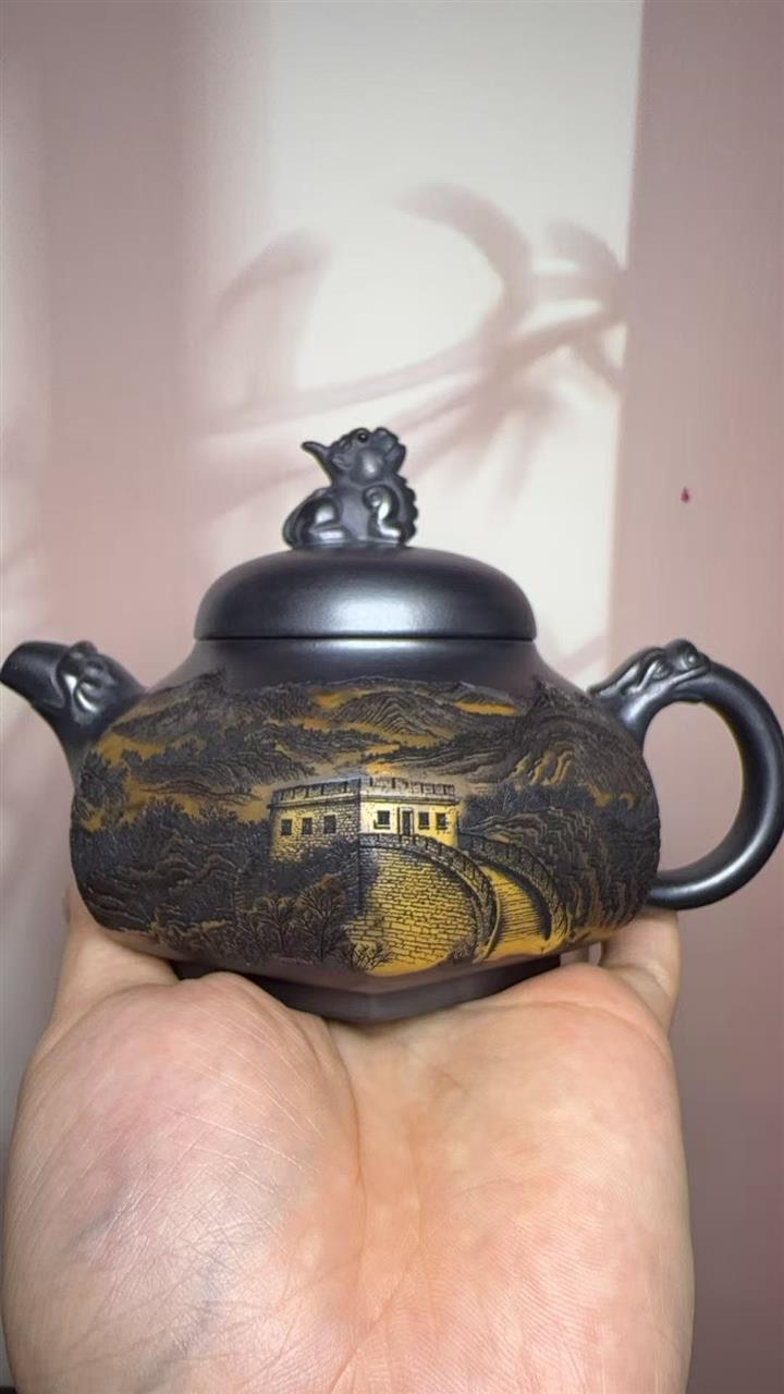 【作品介紹】此款壺形線條流暢,壺把,壺嘴,壺身壹氣呵成栩栩如生,是收藏把玩的好壺,泥料色澤古樸典雅,日久使用,漸露鋒芒,養成變化快,溫潤莊重,用其泡茶,使用的年代久,壺身就溫潤,泡出來的茶湯也就醇郁芳馨。