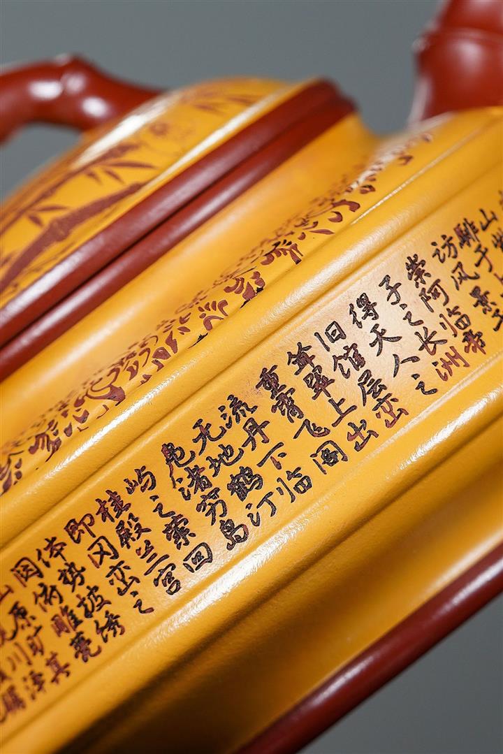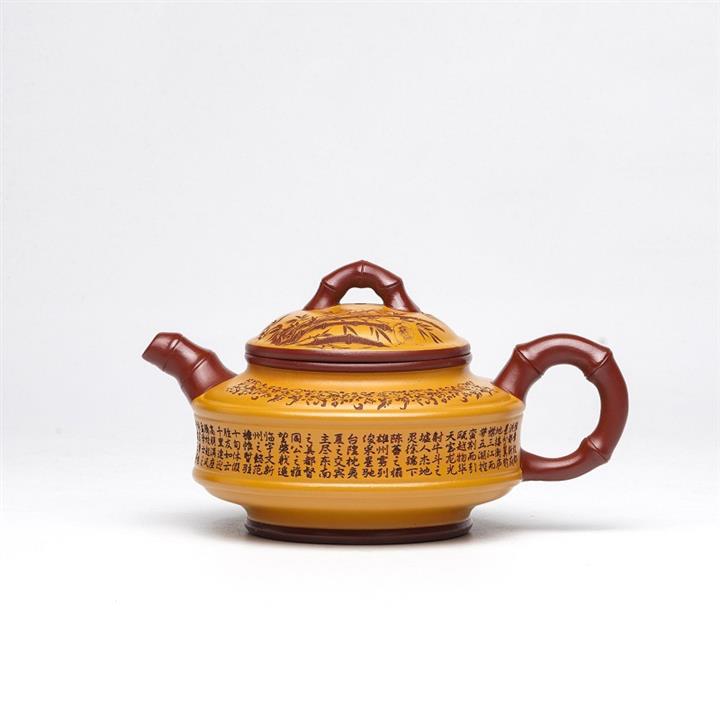 220cc原礦大紅袍雙色雙線竹鼓茶壺POT8865