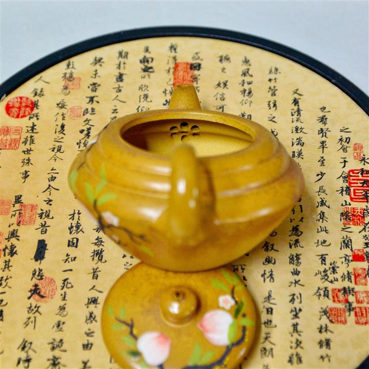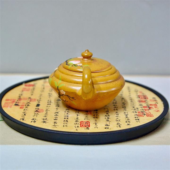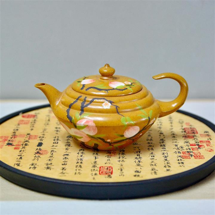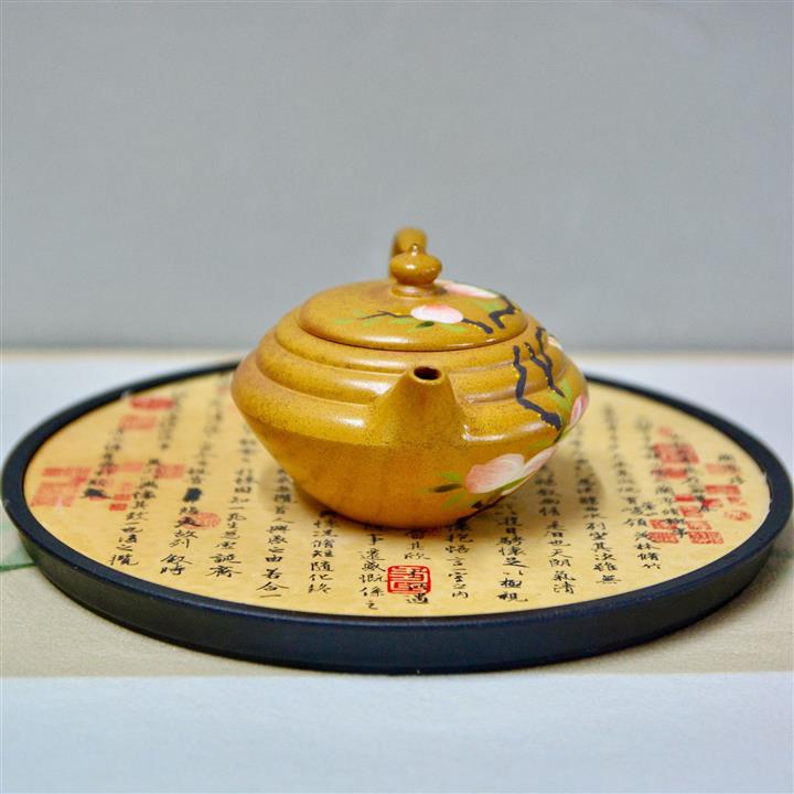 【泥料特點】砂土氣重,似淳實農民,日久使用,漸露鋒芒,養成變化,溫潤莊重。紫砂是壹種雙重氣孔結構的多孔性材質,氣孔微細,密度高。用紫砂壺沏茶,不失原味,且香不渙散,得茶之真香真味。紫砂使用越久,壺身色澤越發光亮照人,氣韻溫雅。紫砂壺長久使用器身會因撫摸擦拭,變得越發溫潤光澤。