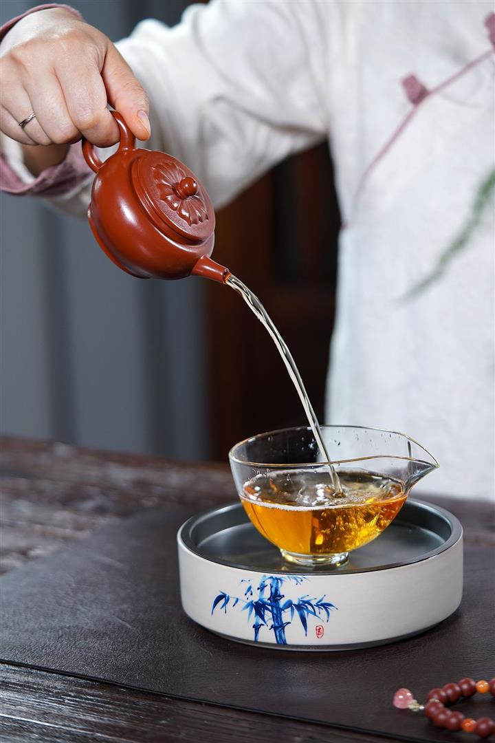 【泥料特點】砂土氣重,似淳實農民,日久使用,漸露鋒芒,養成變化,溫潤莊重。紫砂是壹種雙重氣孔結構的多孔性材質,氣孔微細,密度高。用紫砂壺沏茶,不失原味,且香不渙散,得茶之真香真味。紫砂使用越久,壺身色澤越發光亮照人,氣韻溫雅。紫砂壺長久使用器身會因撫摸擦拭,變得越發溫潤光澤。