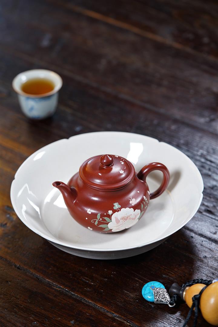 160cc原礦大紅袍泥繪秋水茶壺POT8929