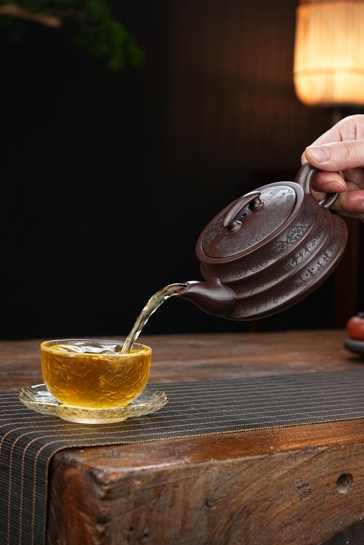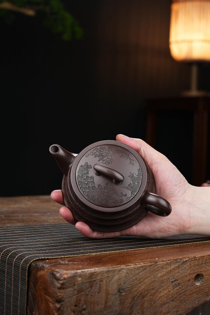 【泥料特點】砂土氣重,似淳實農民,日久使用,漸露鋒芒,養成變化,溫潤莊重。紫砂是壹種雙重氣孔結構的多孔性材質,氣孔微細,密度高。用紫砂壺沏茶,不失原味,且香不渙散,得茶之真香真味。紫砂使用越久,壺身色澤越發光亮照人,氣韻溫雅。紫砂壺長久使用器身會因撫摸擦拭,變得越發溫潤光澤。
