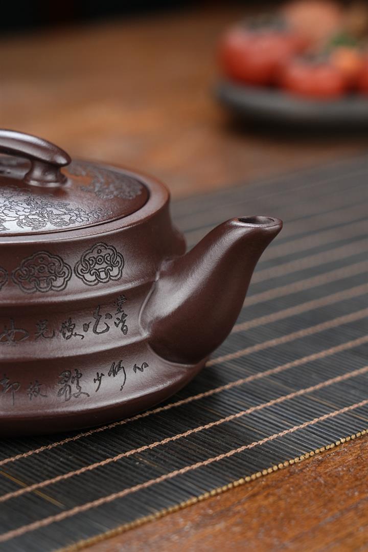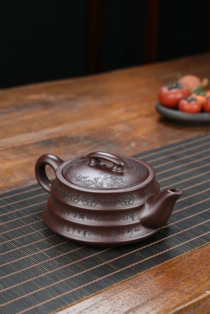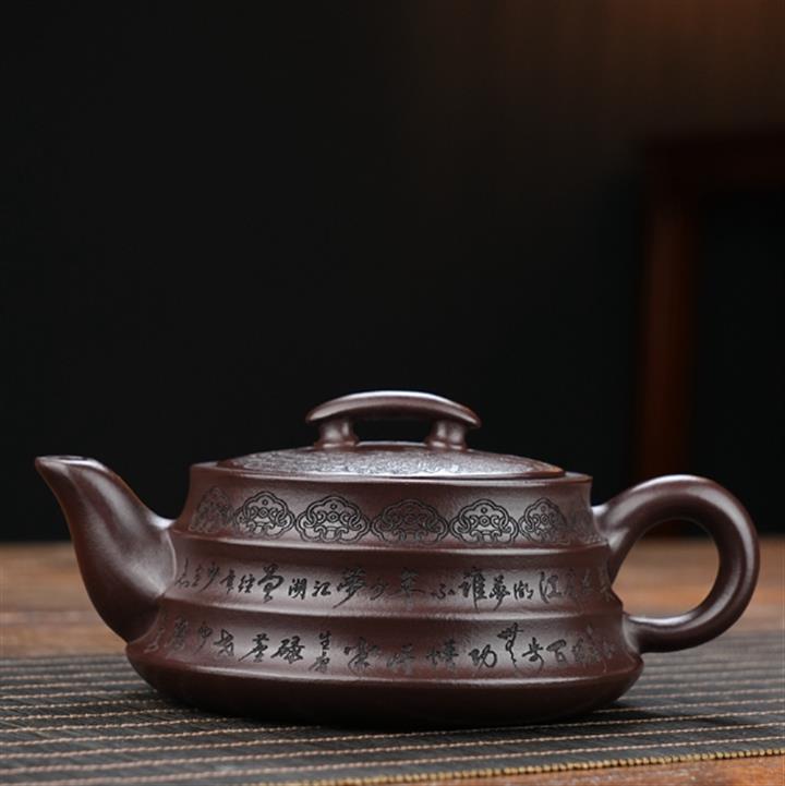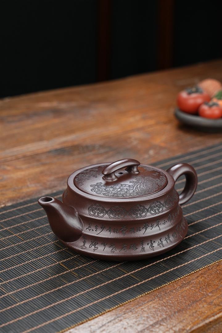 原礦紫泥茄瓜堆繪茶壺POT8592