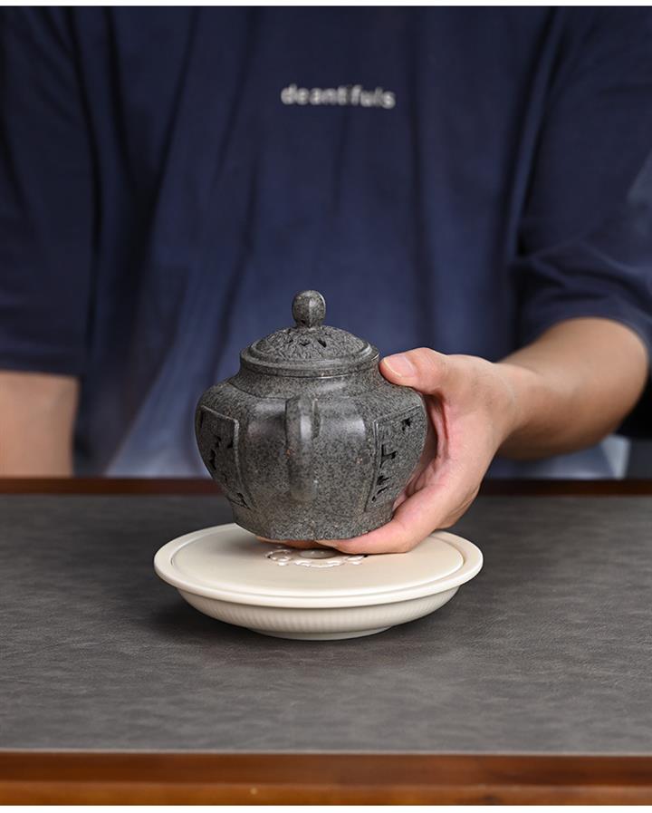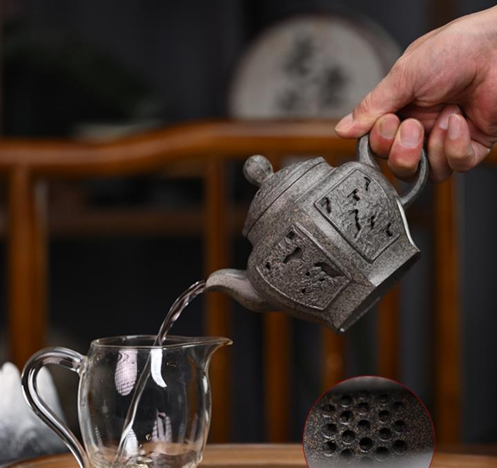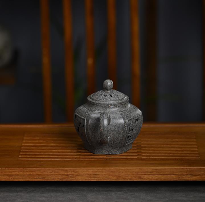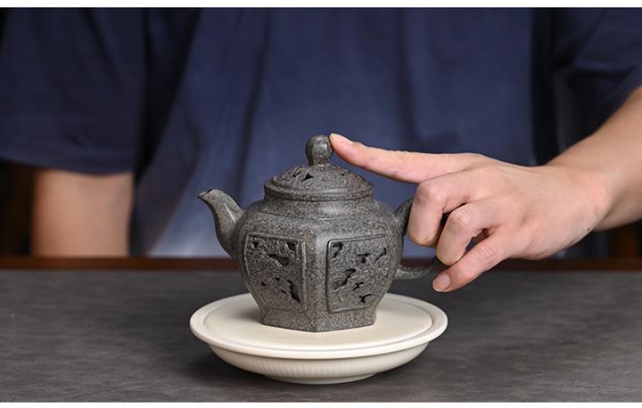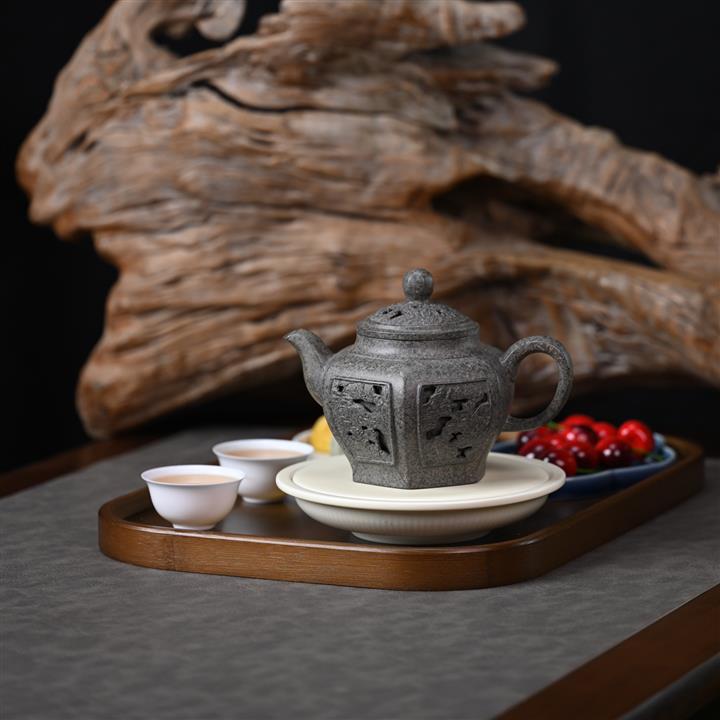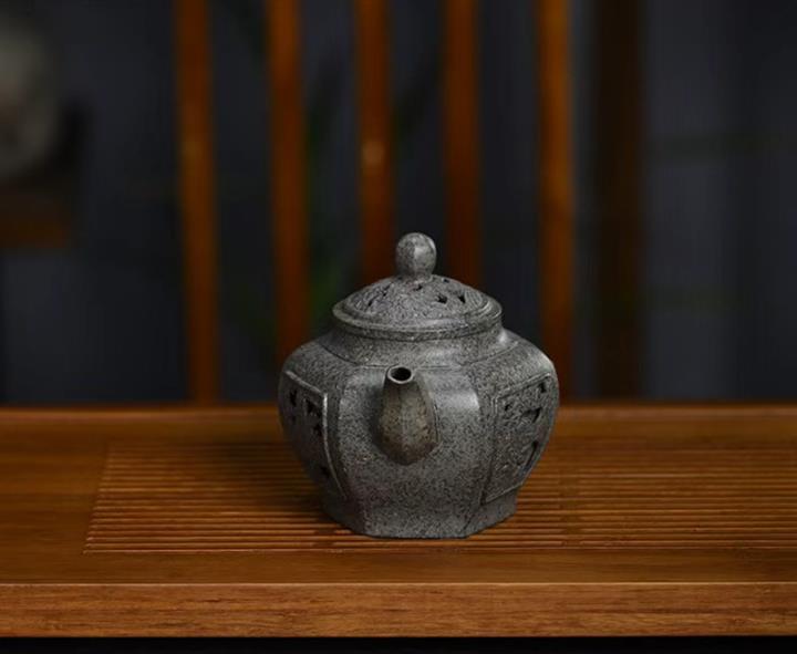 450cc原礦開花泥鏤空六方宮燈茶壺POT8932