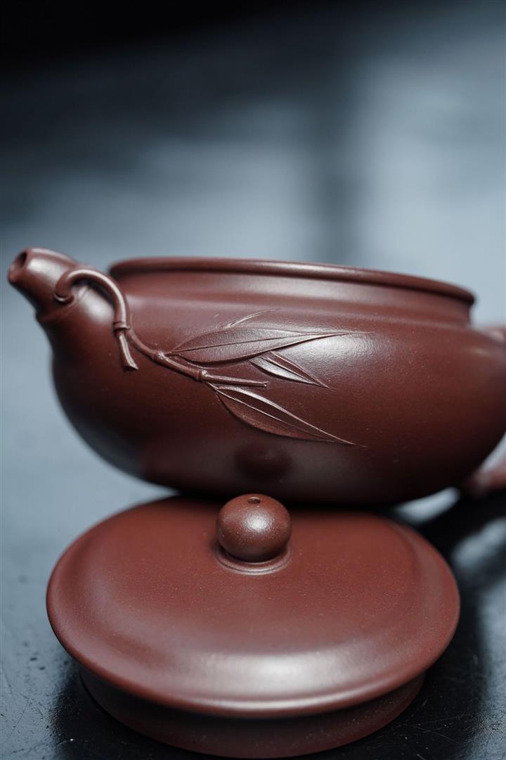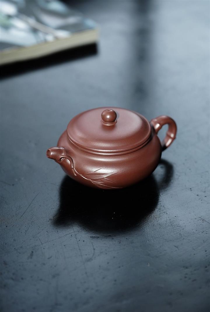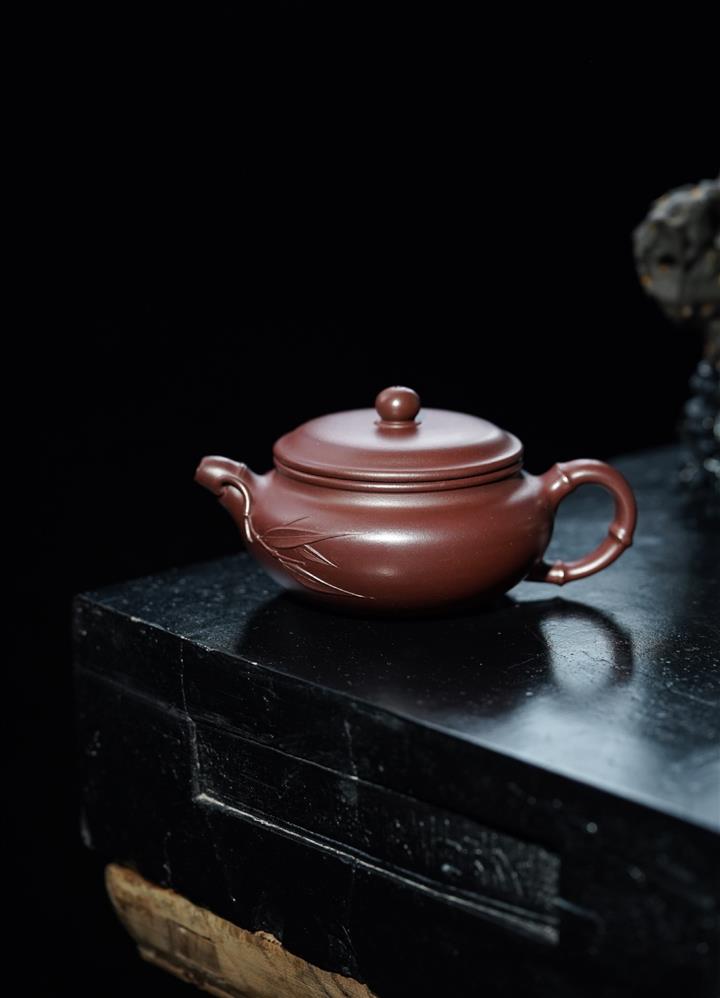 家藏紫血砂竹韵百福紫砂壺POT5553