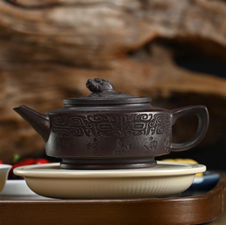 300cc原礦古紅泥周盤魚化龍刻繪茶壺POT8362