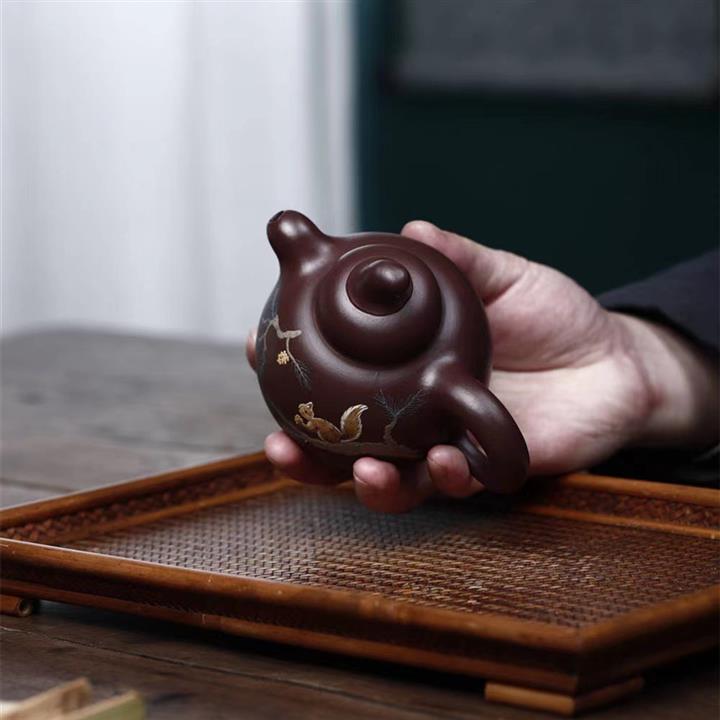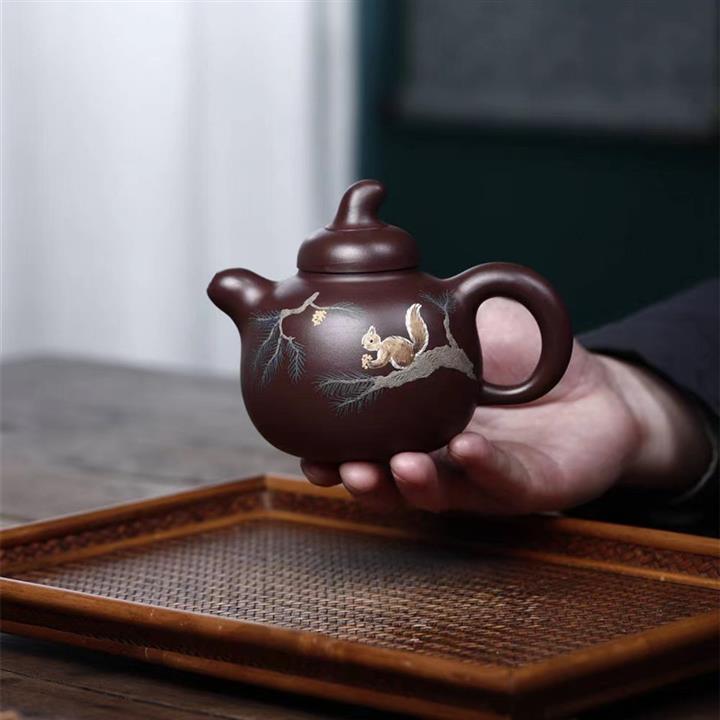 250CC原礦紫泥道洪金瓜松鼠茶壺POT8959