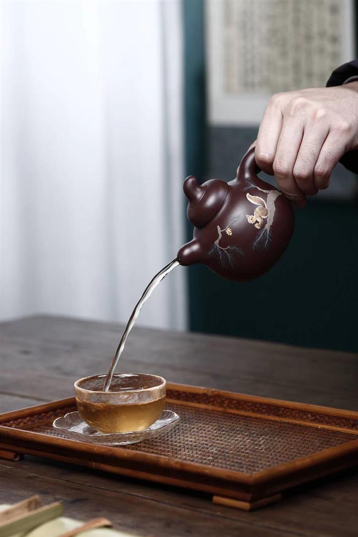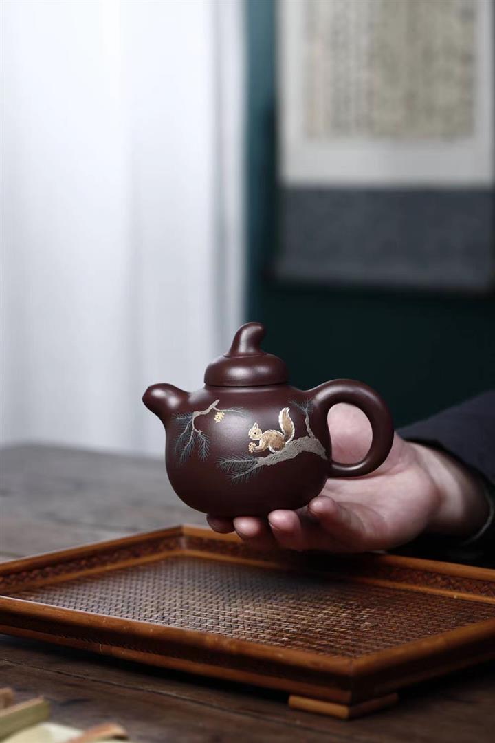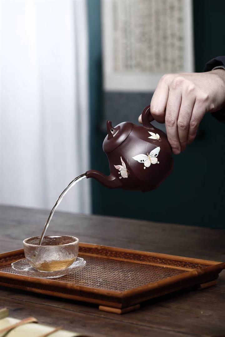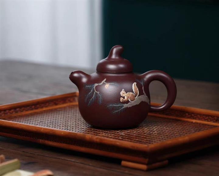 【泥料特點】砂土氣重,似淳實農民,日久使用,漸露鋒芒,養成變化,溫潤莊重。紫砂是壹種雙重氣孔結構的多孔性材質,氣孔微細,密度高。用紫砂壺沏茶,不失原味,且香不渙散,得茶之真香真味。紫砂使用越久,壺身色澤越發光亮照人,氣韻溫雅。紫砂壺長久使用器身會因撫摸擦拭,變得越發溫潤光澤。