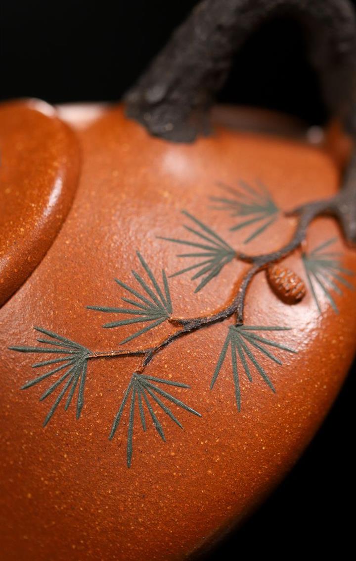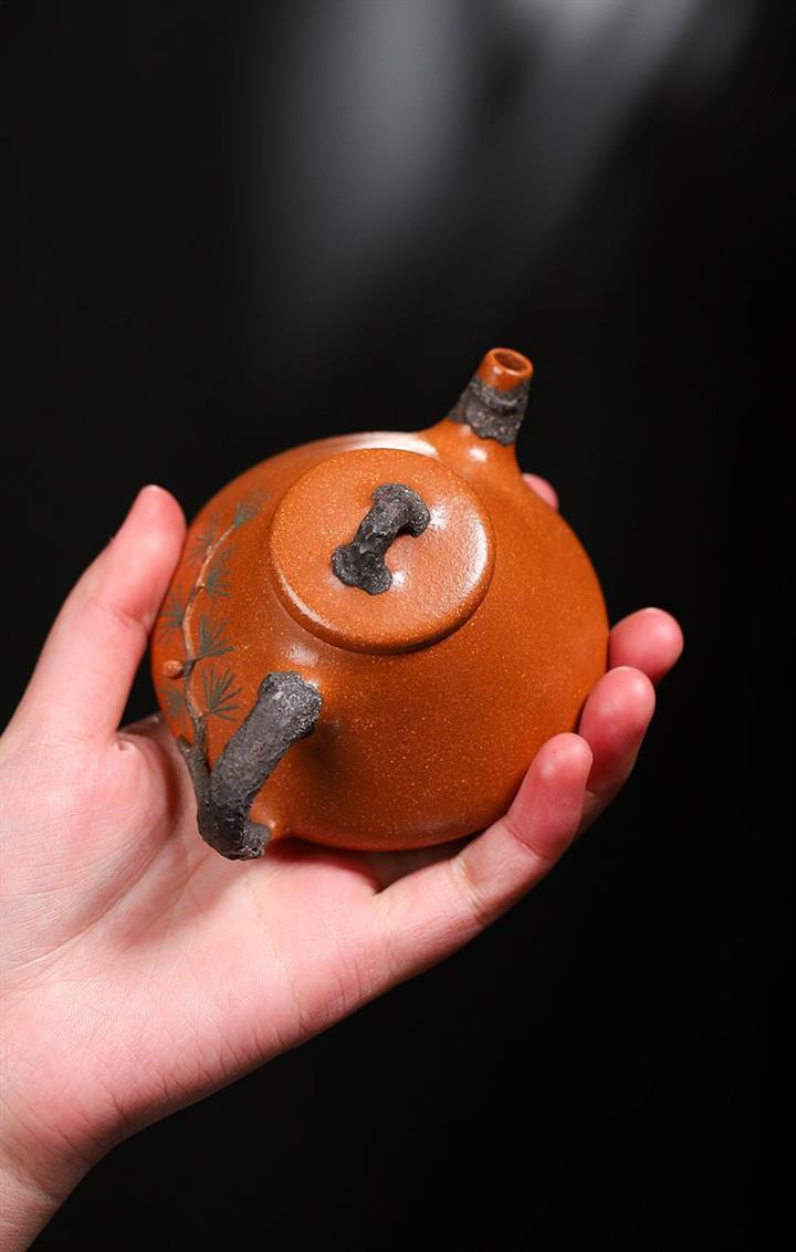 【泥料特點】砂土氣重,似淳實農民,日久使用,漸露鋒芒,養成變化,溫潤莊重。紫砂是壹種雙重氣孔結構的多孔性材質,氣孔微細,密度高。用紫砂壺沏茶,不失原味,且香不渙散,得茶之真香真味。紫砂使用越久,壺身色澤越發光亮照人,氣韻溫雅。紫砂壺長久使用器身會因撫摸擦拭,變得越發溫潤光澤。