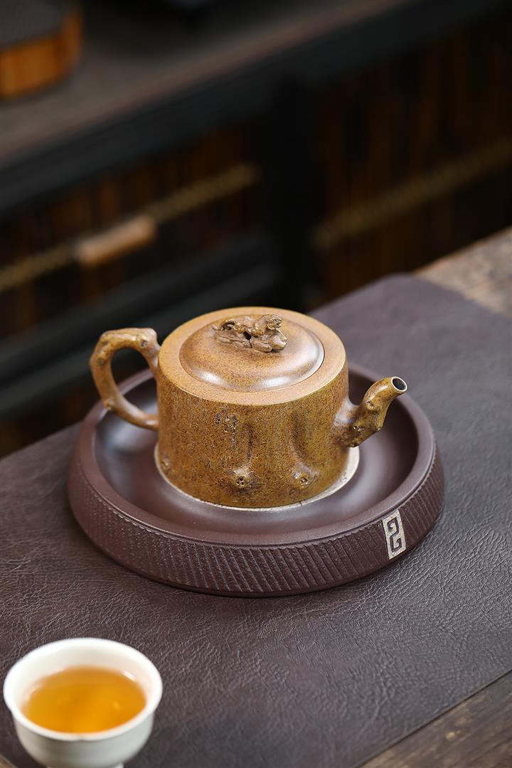【泥料特點】砂土氣重,似淳實農民,日久使用,漸露鋒芒,養成變化,溫潤莊重。紫砂是壹種雙重氣孔結構的多孔性材質,氣孔微細,密度高。用紫砂壺沏茶,不失原味,且香不渙散,得茶之真香真味。紫砂使用越久,壺身色澤越發光亮照人,氣韻溫雅。紫砂壺長久使用器身會因撫摸擦拭,變得越發溫潤光澤。