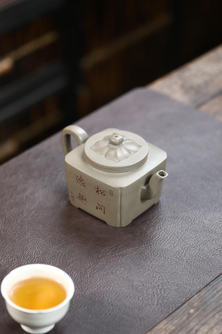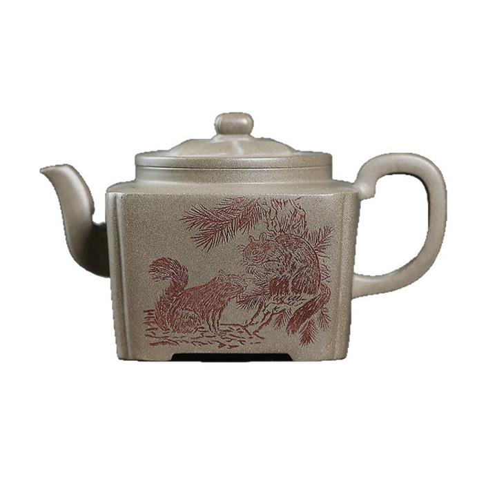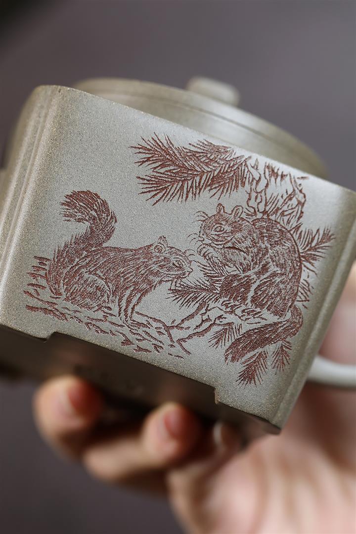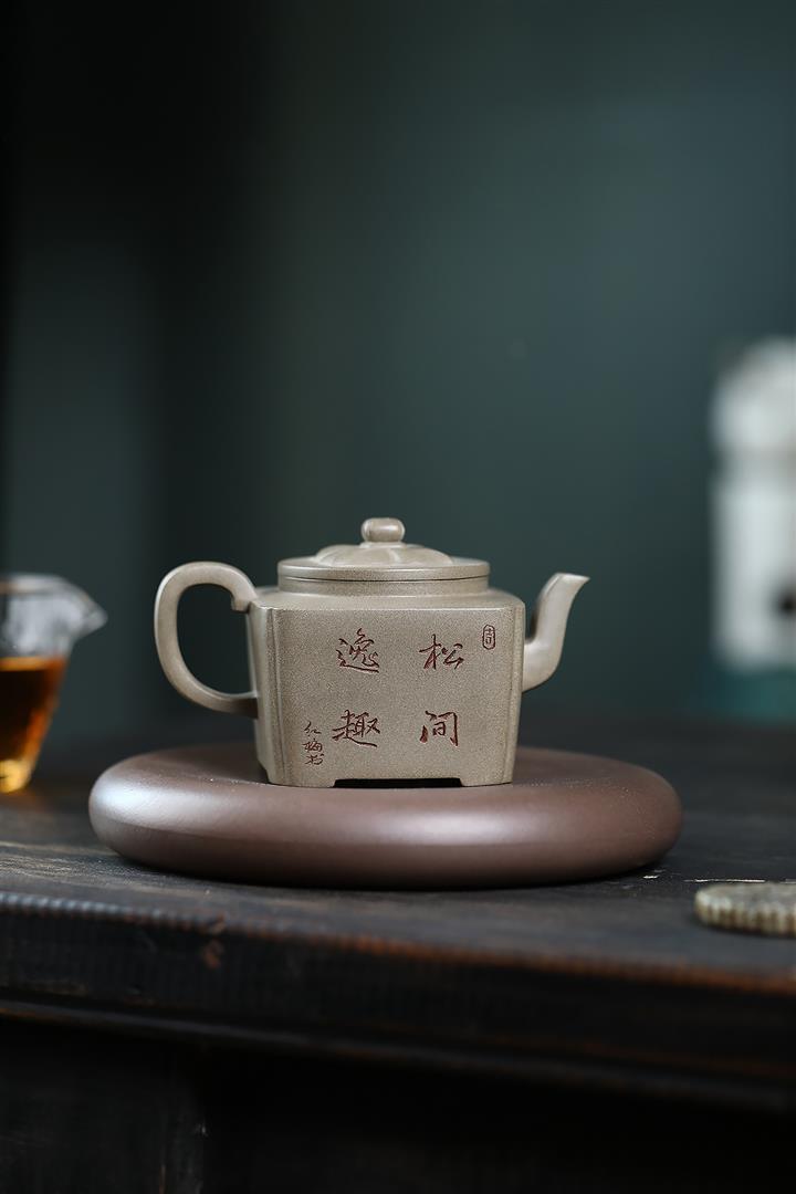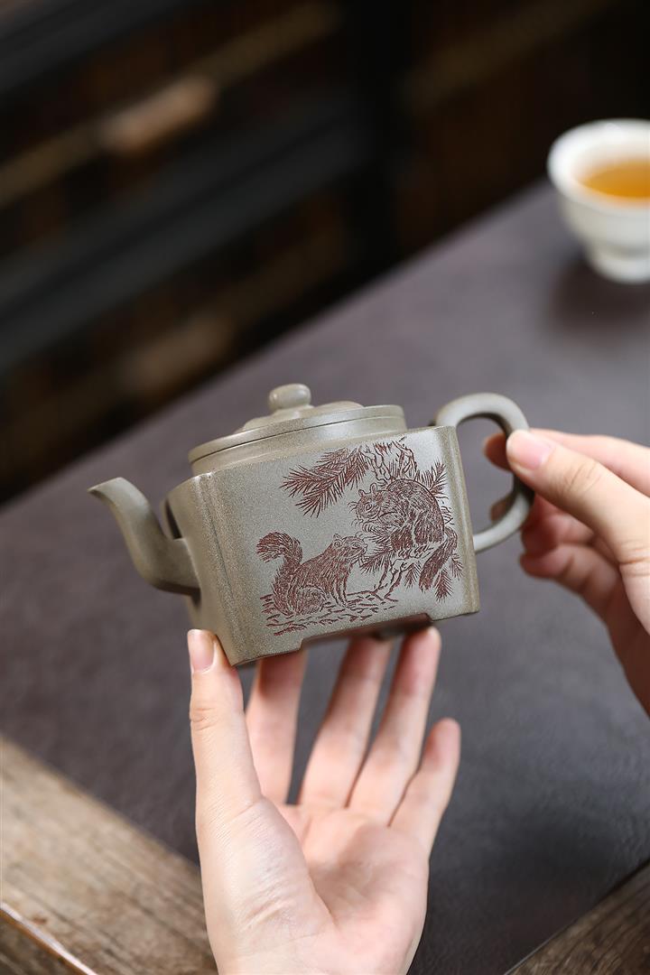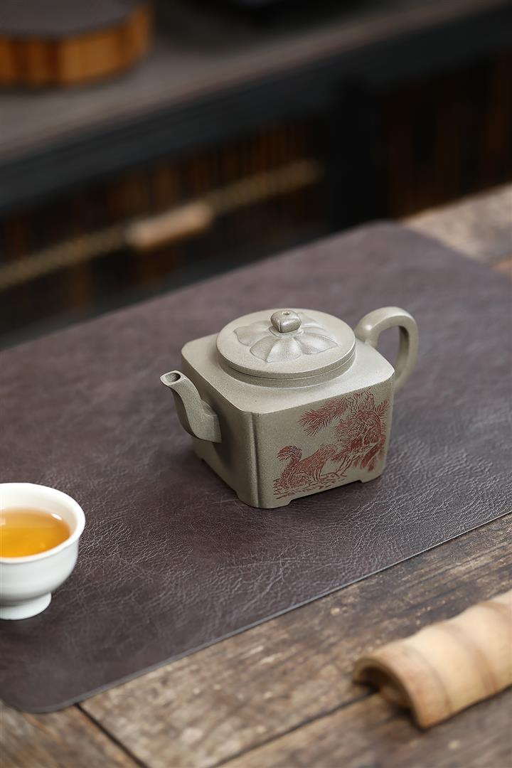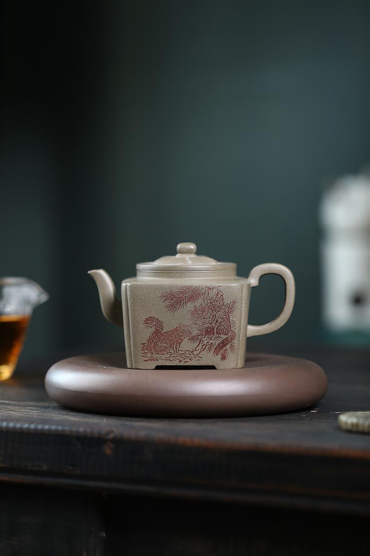 300cc原礦蟹殼青四方松間逸趣茶壺POT8976