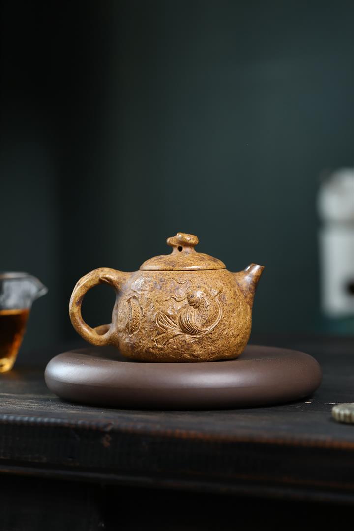 原礦龍骨金砂高溫柴燒竹影茶壺POT6668