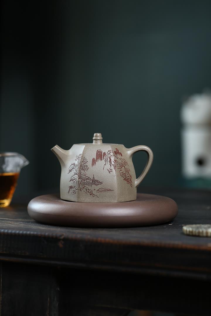 330cc原礦綠泥竹林隱士竹段茶壺POT8528
