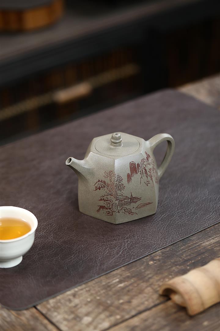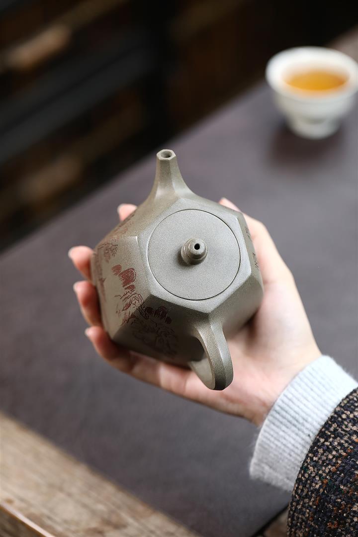 300cc原礦蟹殼青六方漢鐸茶壺POT8983