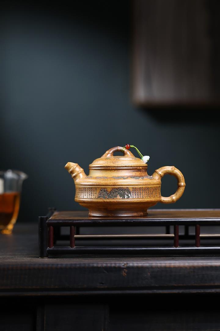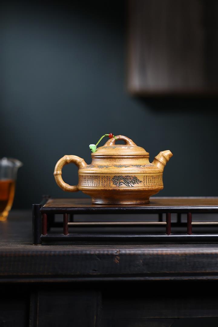 【作品介紹】此款壺形線條流暢,壺把,壺嘴,壺身壹氣呵成栩栩如生,是收藏把玩的好壺,泥料色澤古樸典雅,日久使用,漸露鋒芒,養成變化快,溫潤莊重,用其泡茶,使用的年代久,壺身就溫潤,泡出來的茶湯也就醇郁芳馨。