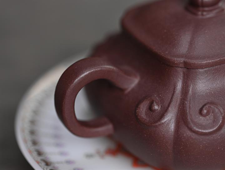【泥料特點】砂土氣重,似淳實農民,日久使用,漸露鋒芒,養成變化,溫潤莊重。紫砂是壹種雙重氣孔結構的多孔性材質,氣孔微細,密度高。用紫砂壺沏茶,不失原味,且香不渙散,得茶之真香真味。紫砂使用越久,壺身色澤越發光亮照人,氣韻溫雅。紫砂壺長久使用器身會因撫摸擦拭,變得越發溫潤光澤。