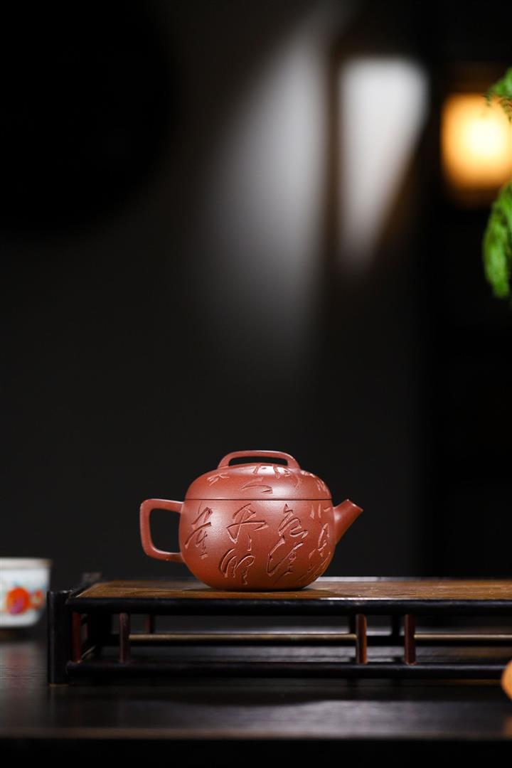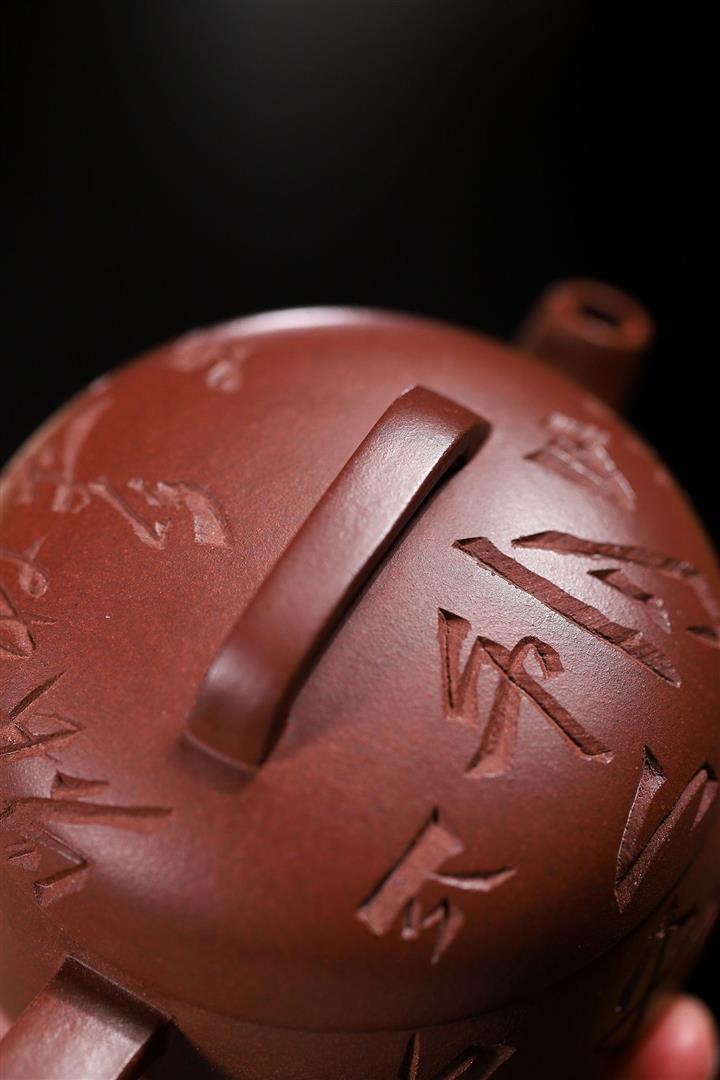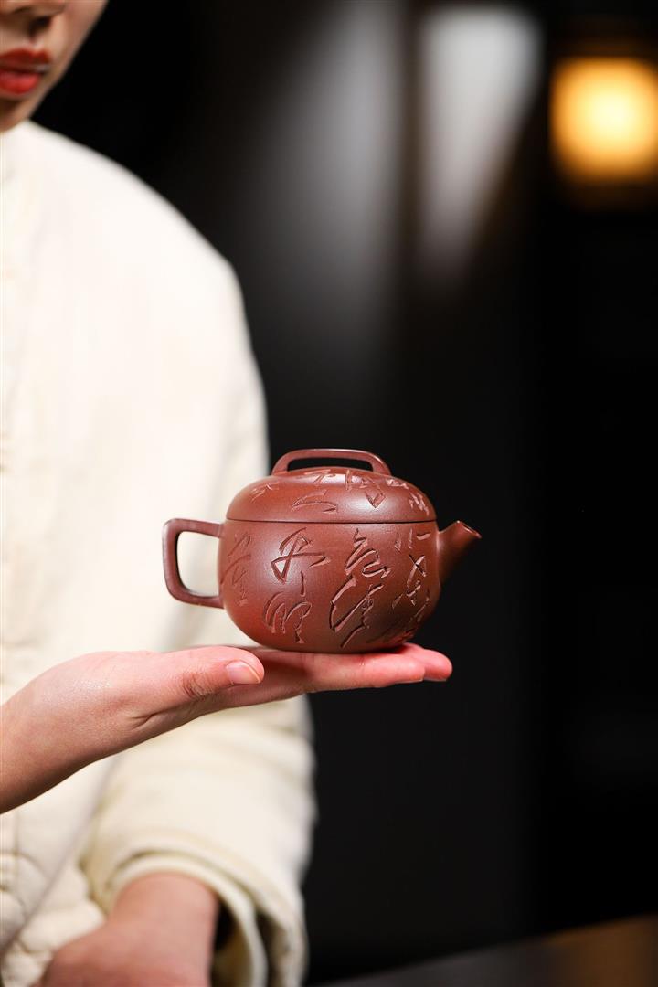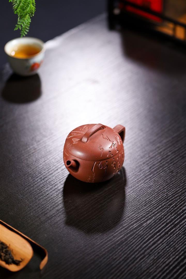 200cc原礦降坡泥柴燒刻字玉婉茶壺POT9012