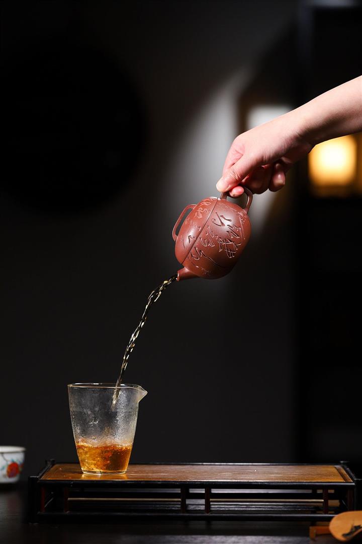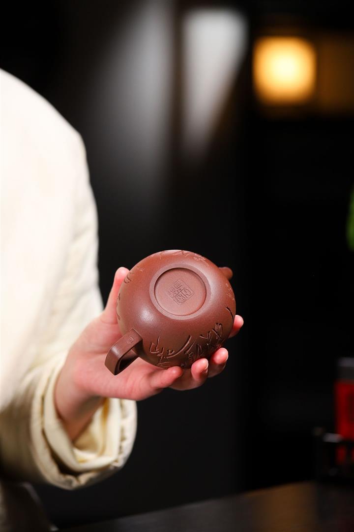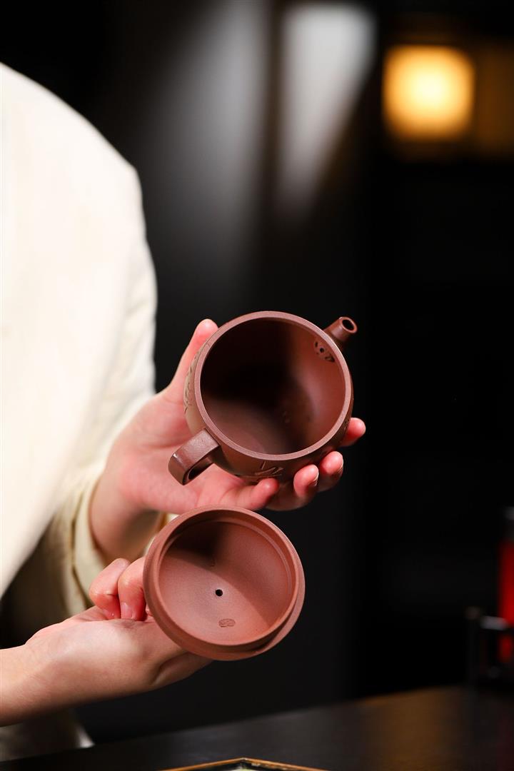 【泥料特點】砂土氣重,似淳實農民,日久使用,漸露鋒芒,養成變化,溫潤莊重。紫砂是壹種雙重氣孔結構的多孔性材質,氣孔微細,密度高。用紫砂壺沏茶,不失原味,且香不渙散,得茶之真香真味。紫砂使用越久,壺身色澤越發光亮照人,氣韻溫雅。紫砂壺長久使用器身會因撫摸擦拭,變得越發溫潤光澤。