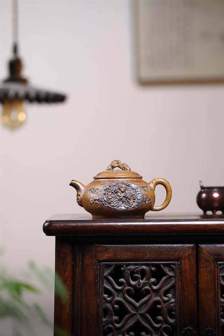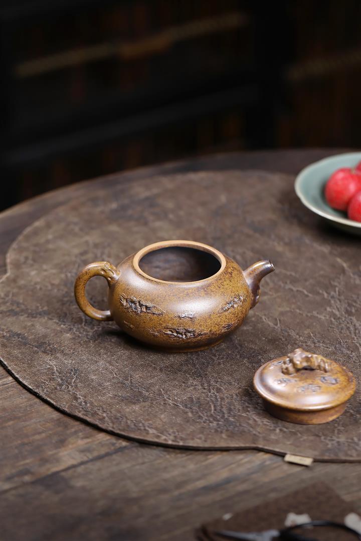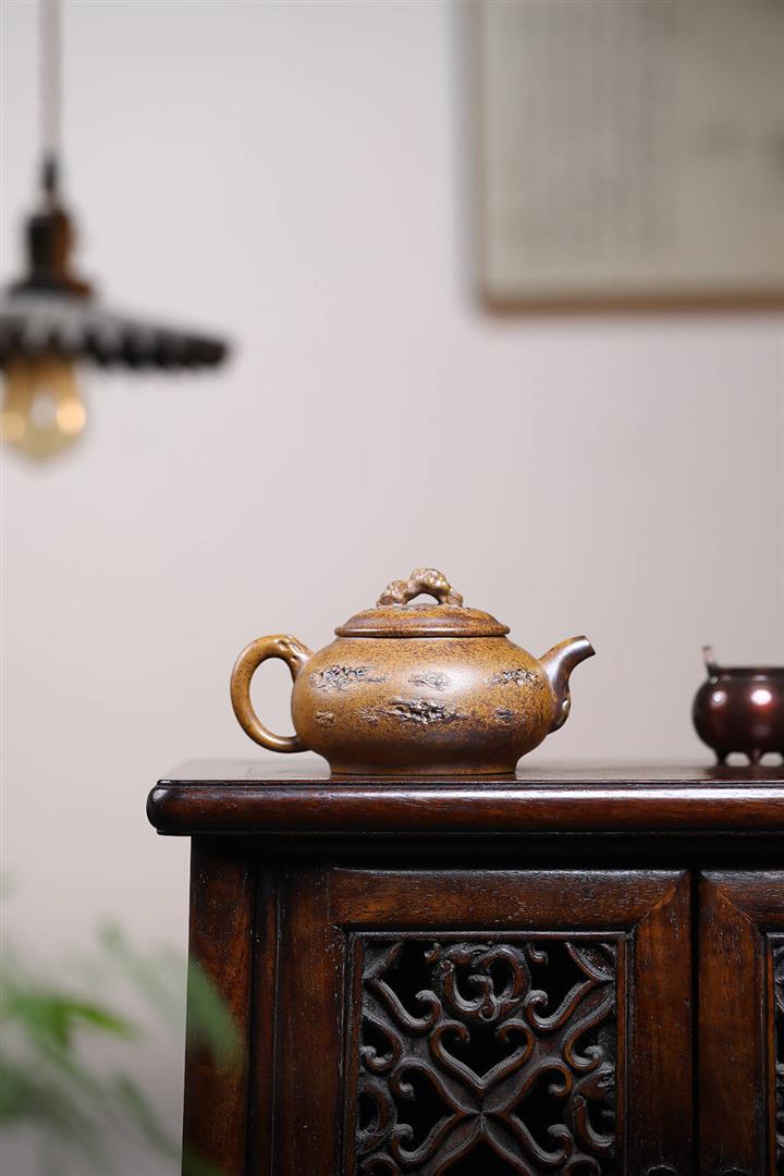 150cc原礦石黃泥幽蘭扁柿茶壺POT8031
