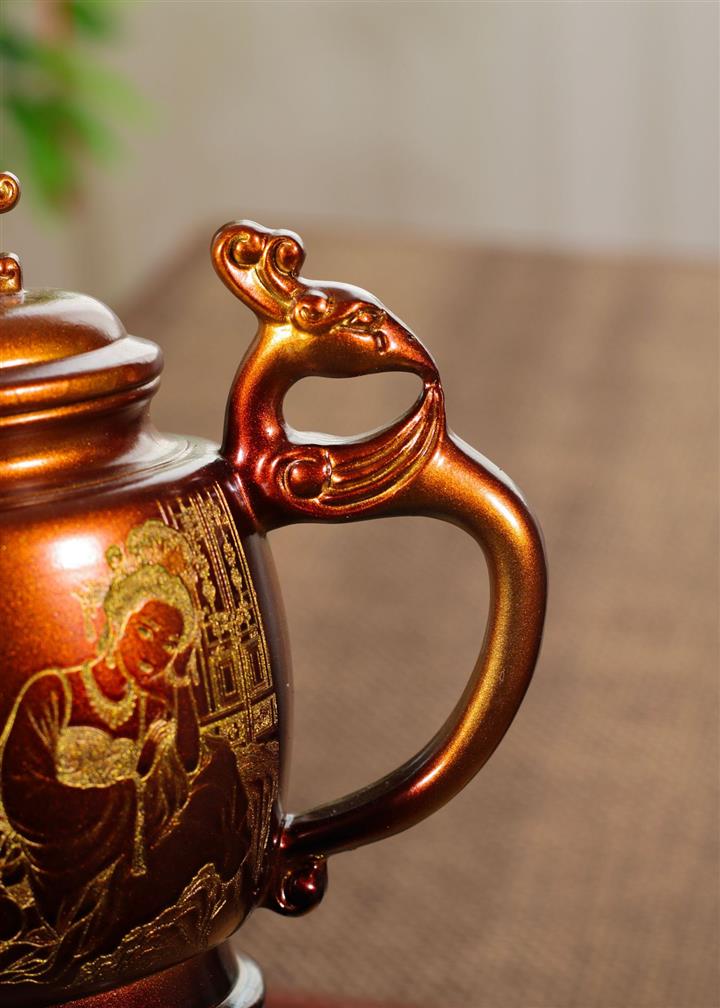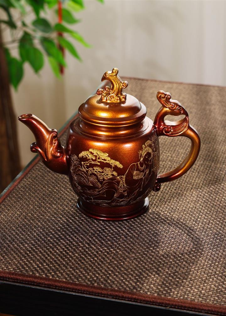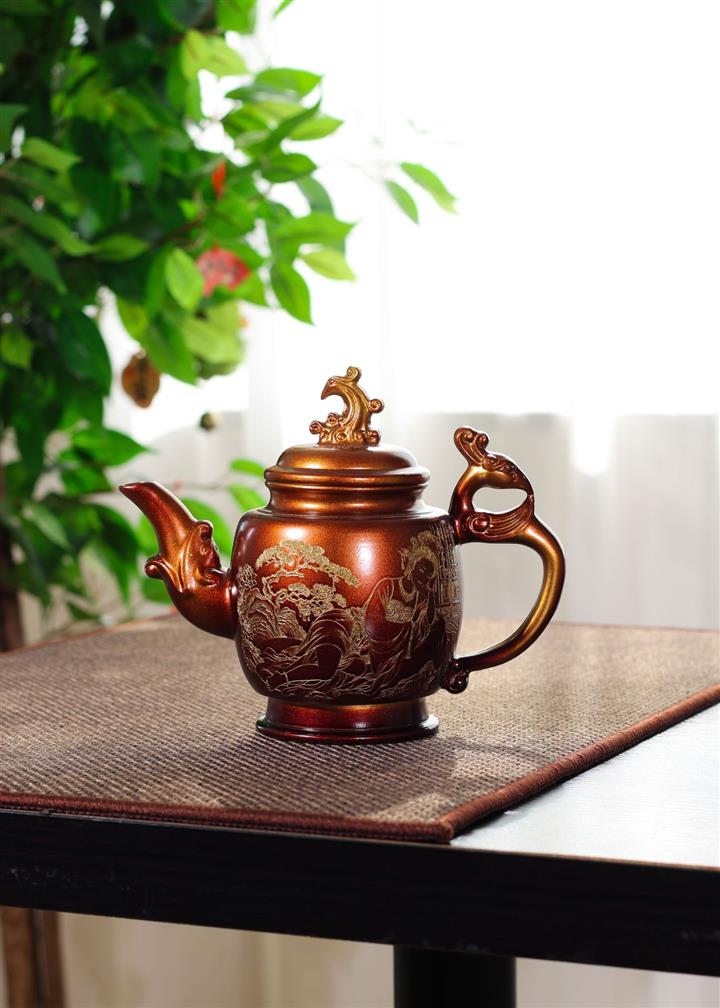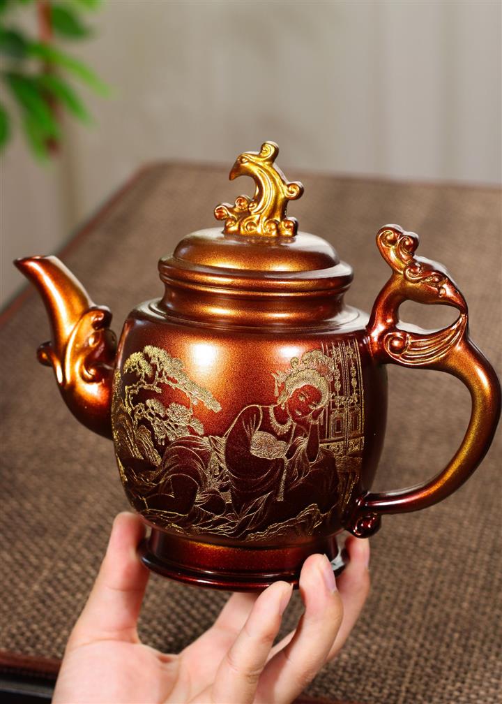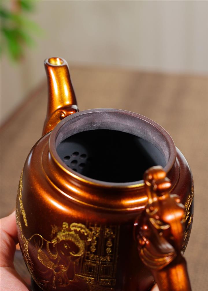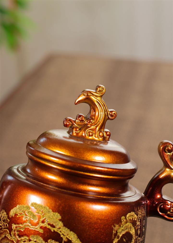 650cc原礦貝殼燒段泥滿刻龍鳳呈祥茶壺POT9046