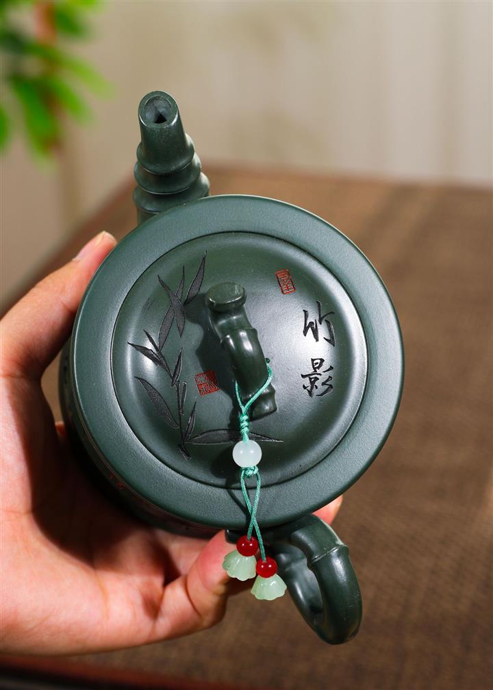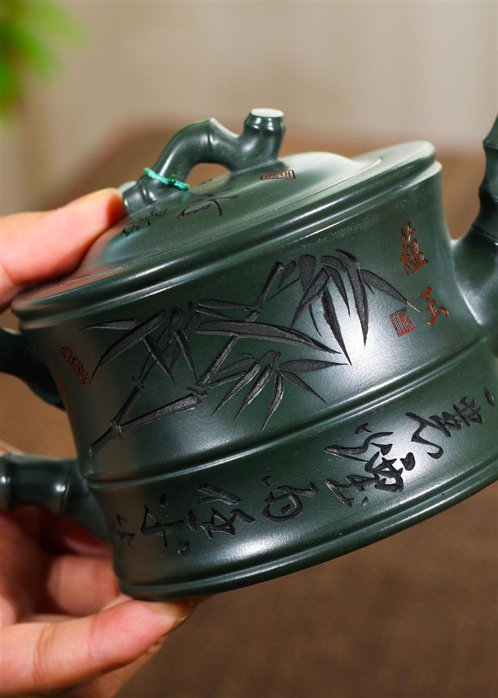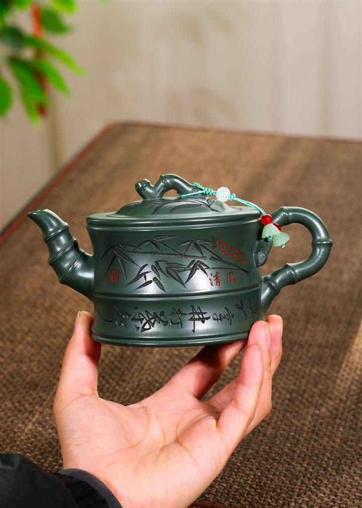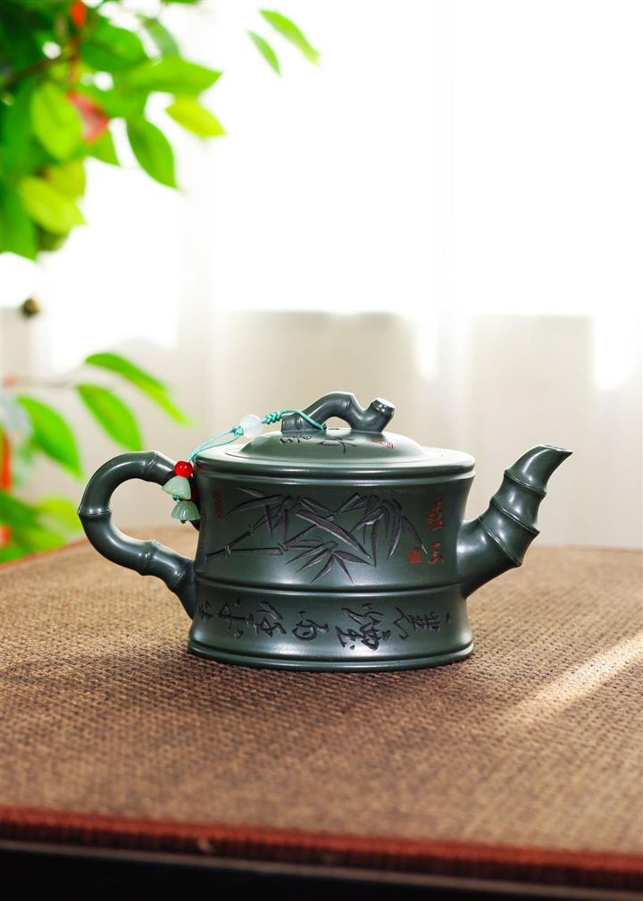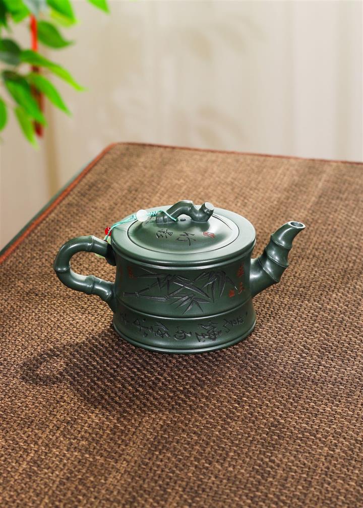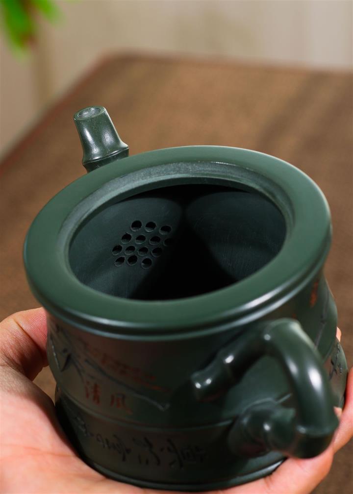 350cc原礦翡翠綠泥通身刻繪竹段茶壺POT9047