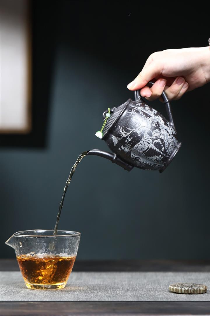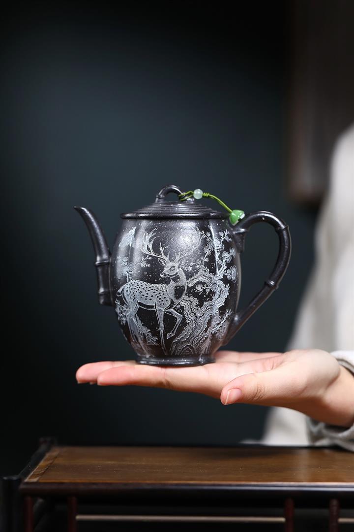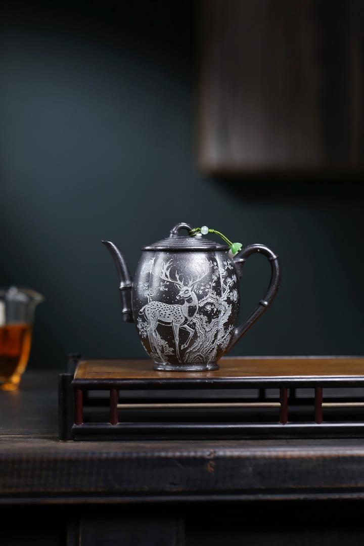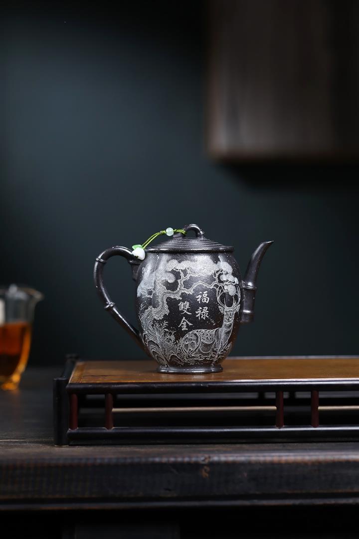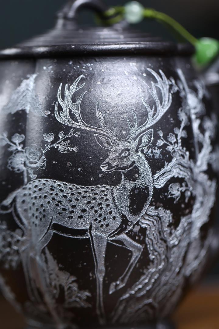 330cc原礦玄鐵星砂松鹿承禧茶壺POT9079
