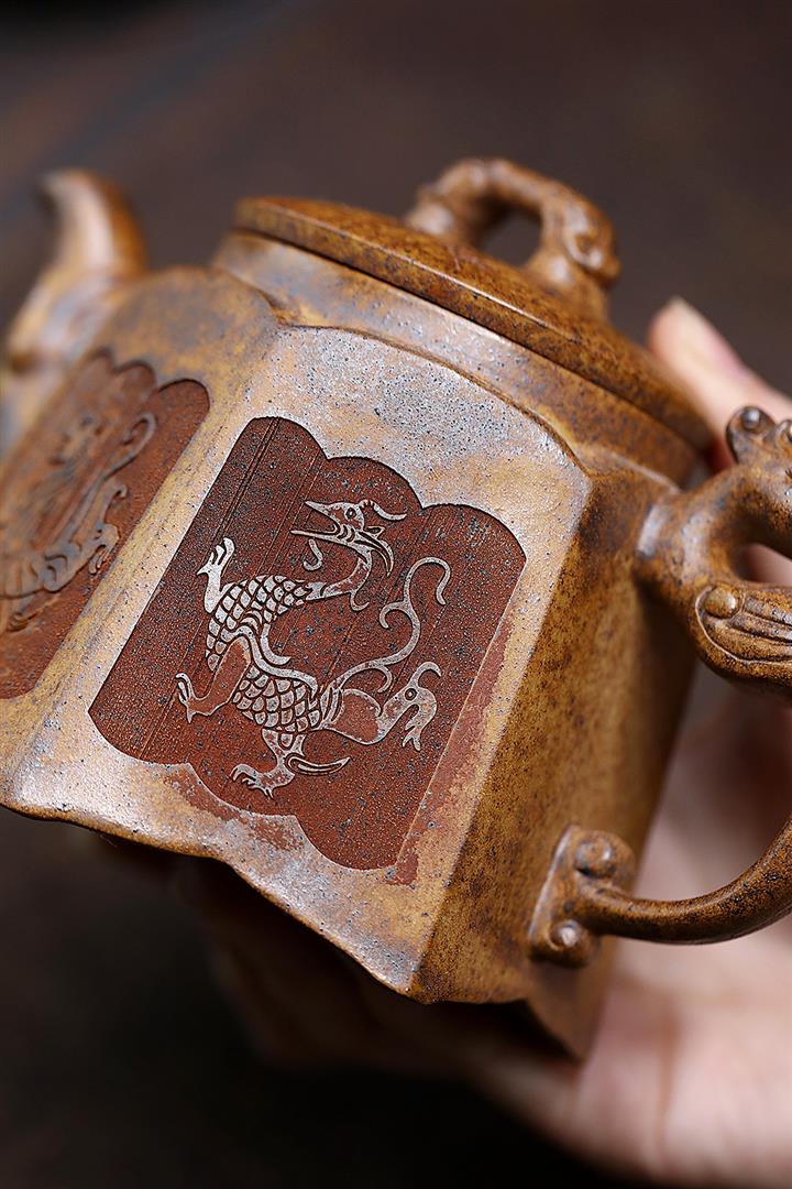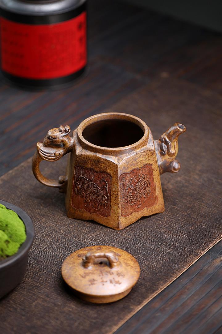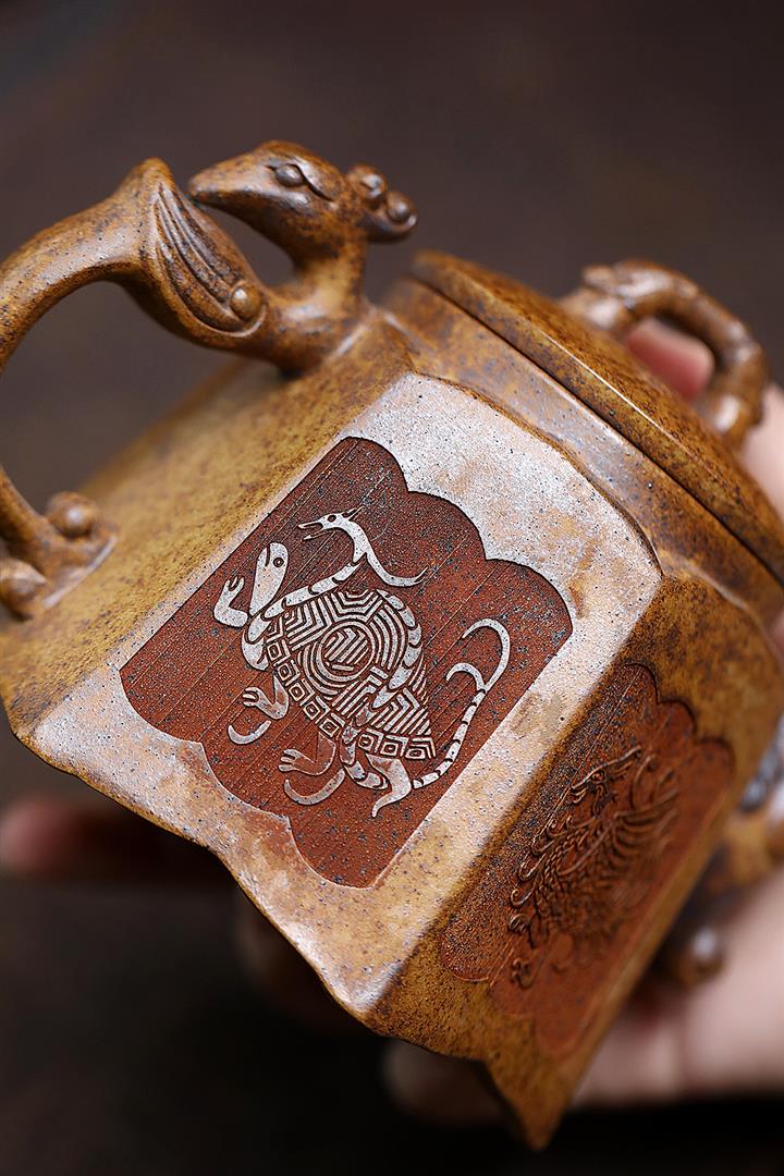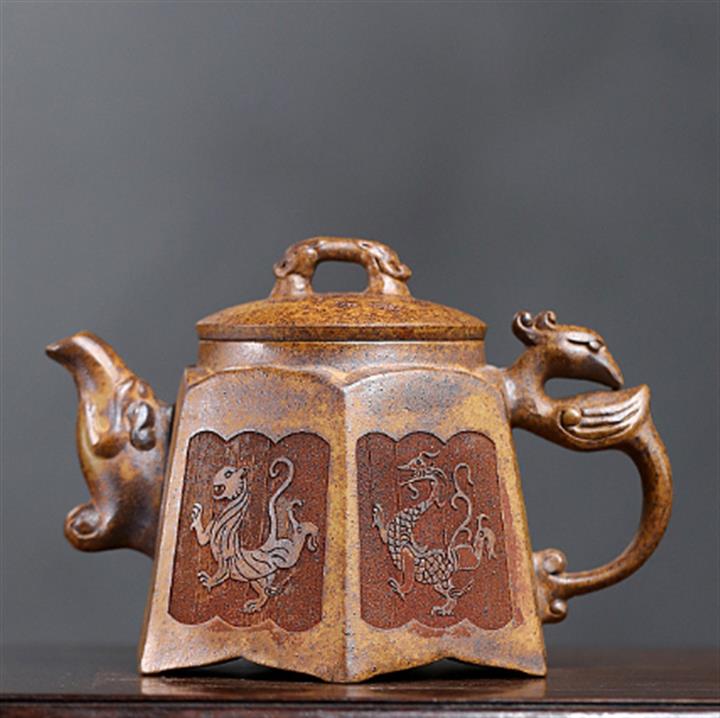 400cc原礦高溫段泥四神獸六方茶壺POT9081