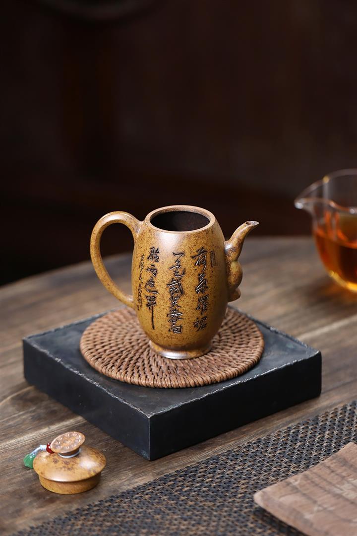 【作品介紹】此款壺形線條流暢,壺把,壺嘴,壺身壹氣呵成栩栩如生,是收藏把玩的好壺,泥料色澤古樸典雅,日久使用,漸露鋒芒,養成變化快,溫潤莊重,用其泡茶,使用的年代久,壺身就溫潤,泡出來的茶湯也就醇郁芳馨。