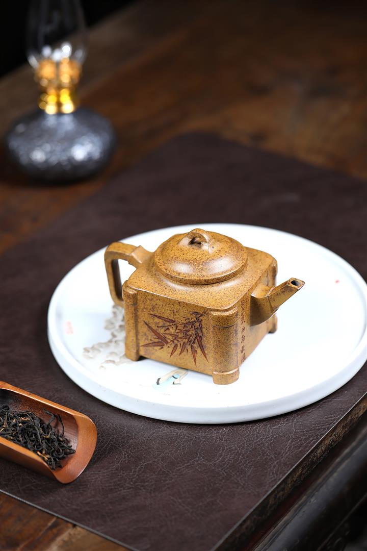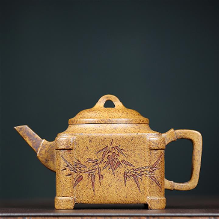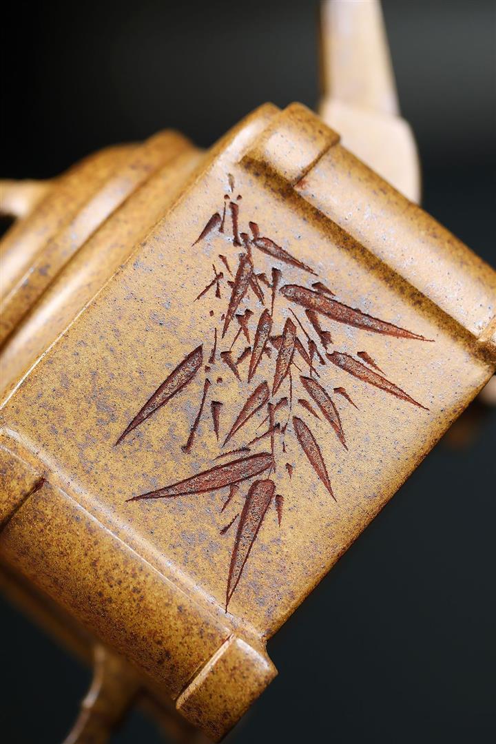 原礦龍骨金砂四方竹段茶壺POT7657