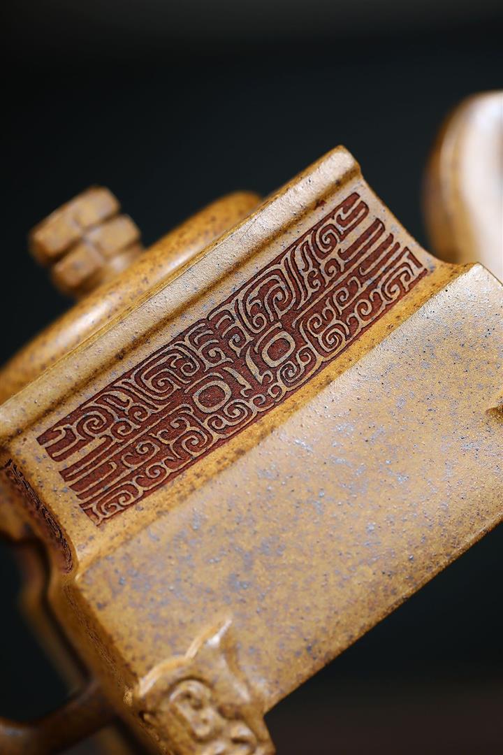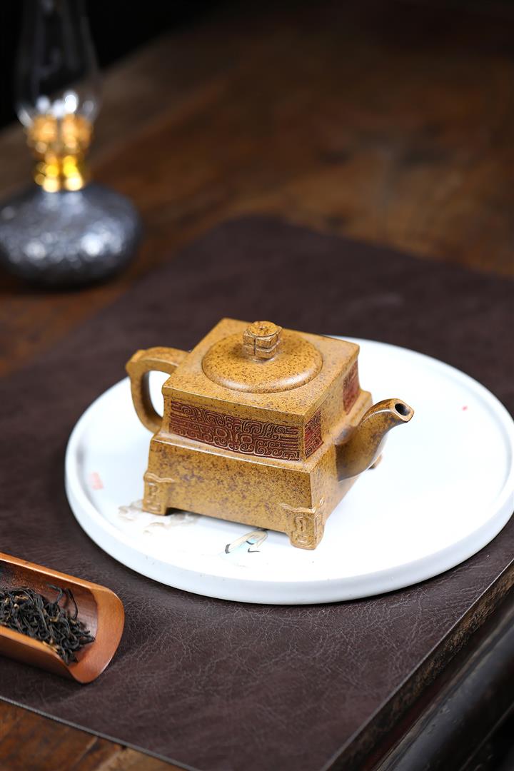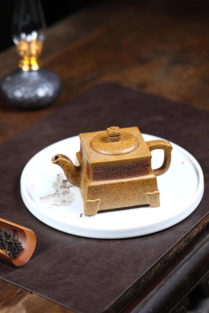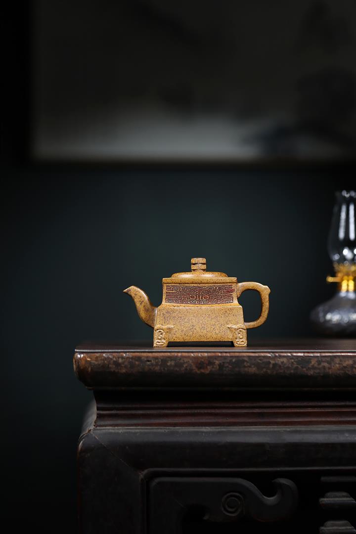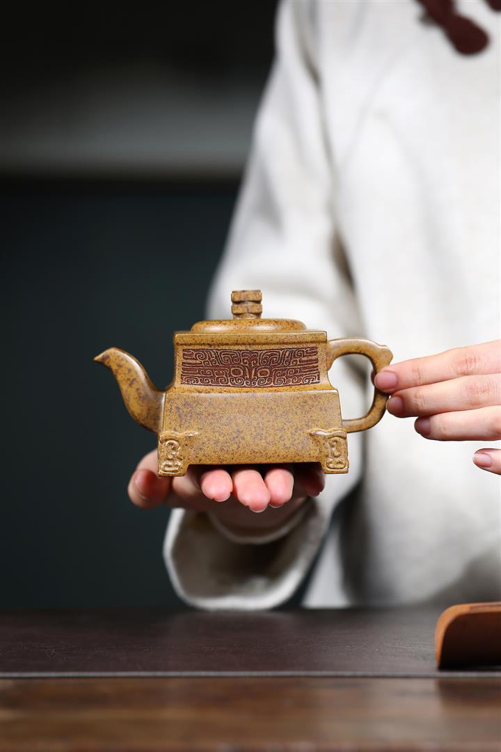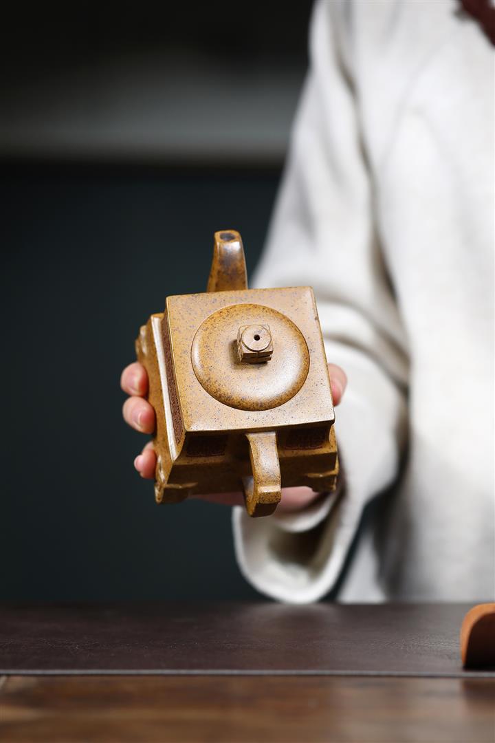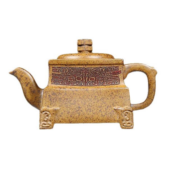 260cc原礦高溫柴燒龍骨金砂四方鼎足茶壺POT9105