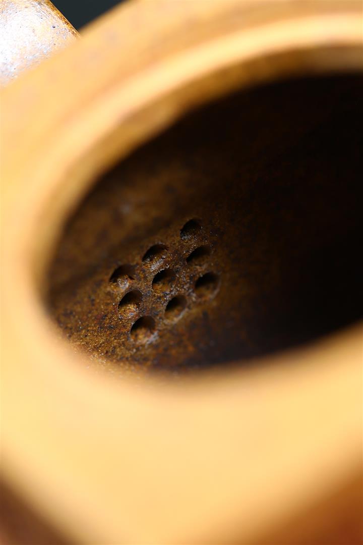 【泥料特點】砂土氣重,似淳實農民,日久使用,漸露鋒芒,養成變化,溫潤莊重。紫砂是壹種雙重氣孔結構的多孔性材質,氣孔微細,密度高。用紫砂壺沏茶,不失原味,且香不渙散,得茶之真香真味。紫砂使用越久,壺身色澤越發光亮照人,氣韻溫雅。紫砂壺長久使用器身會因撫摸擦拭,變得越發溫潤光澤。