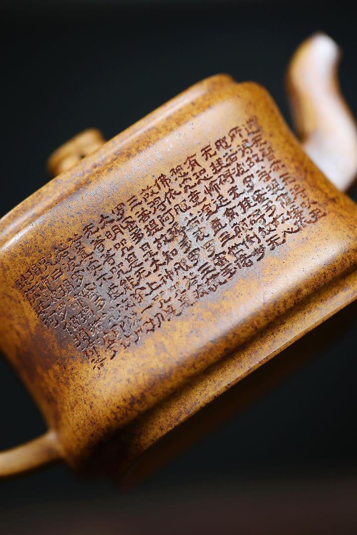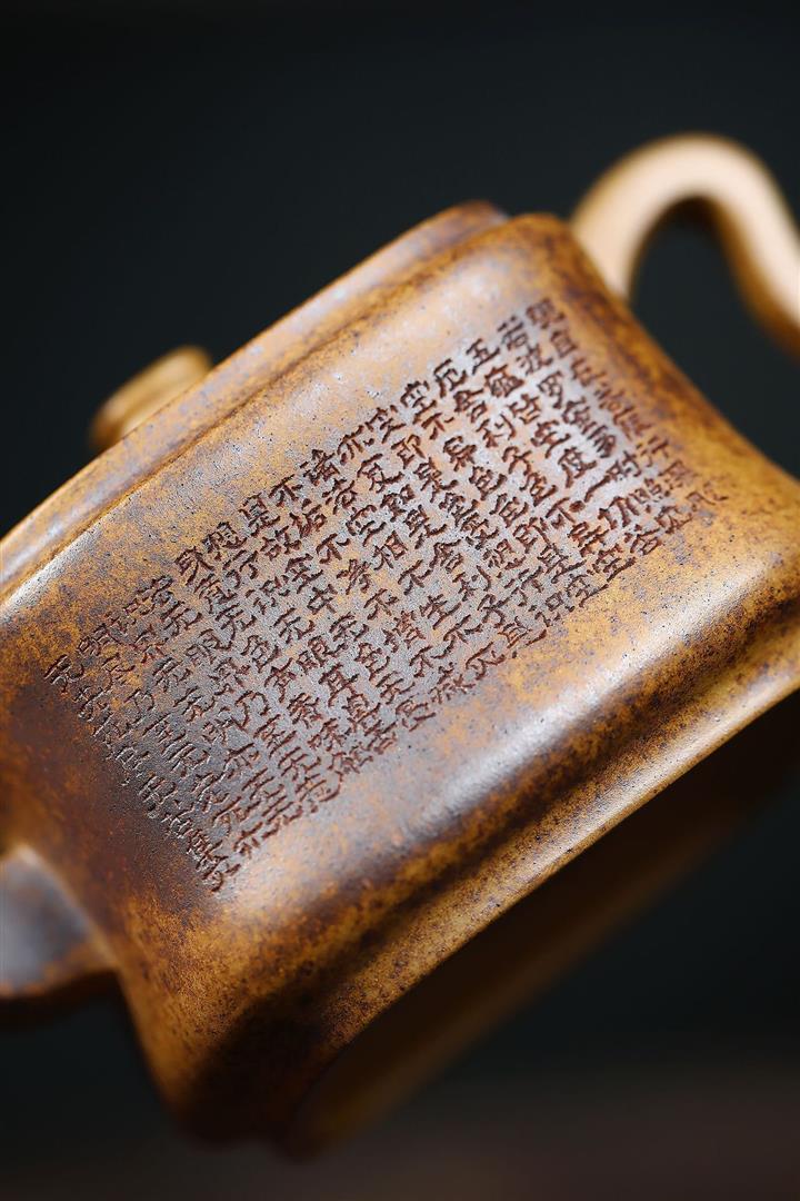 180cc原礦高溫柴燒龍骨金砂四方心經茶壺POT9107