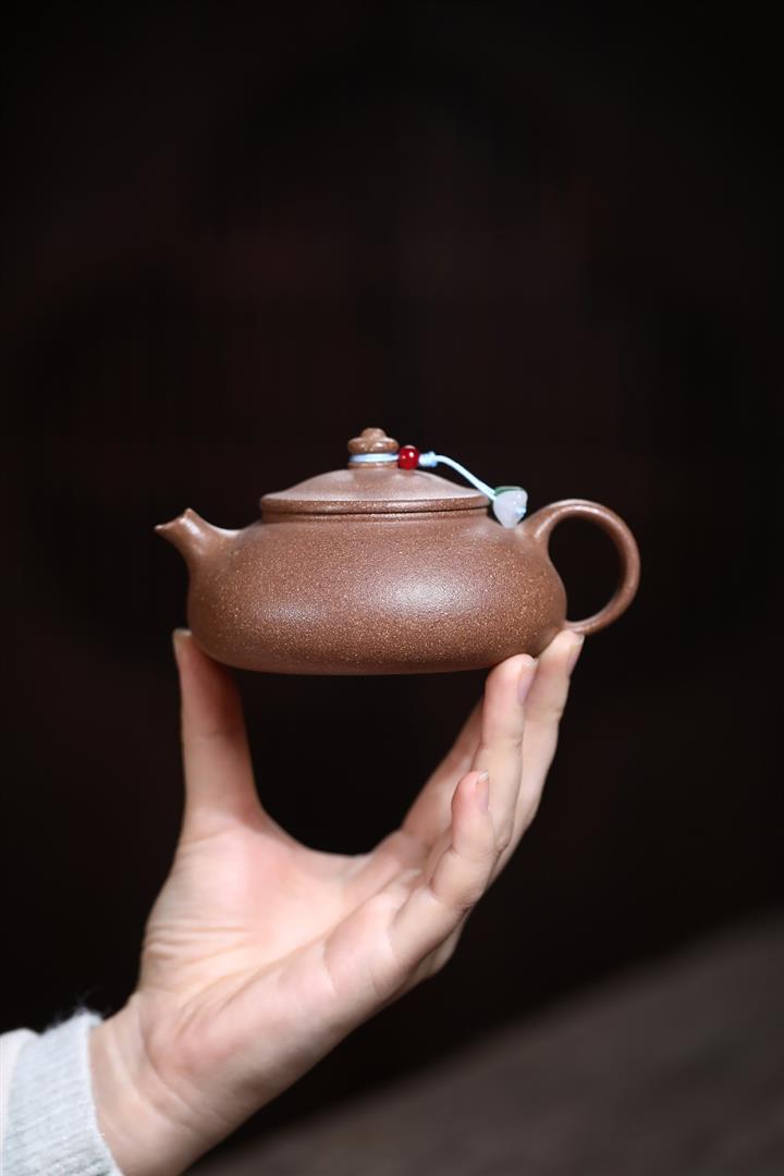 老紫泥紫砂手工如意水平茶壺 Pot3532