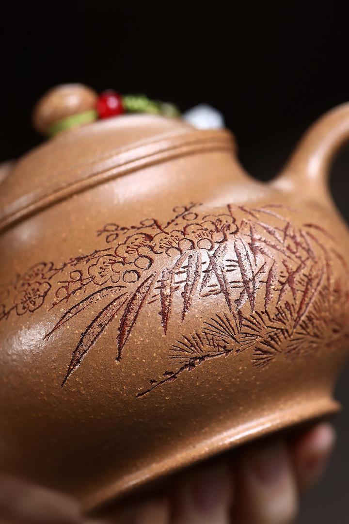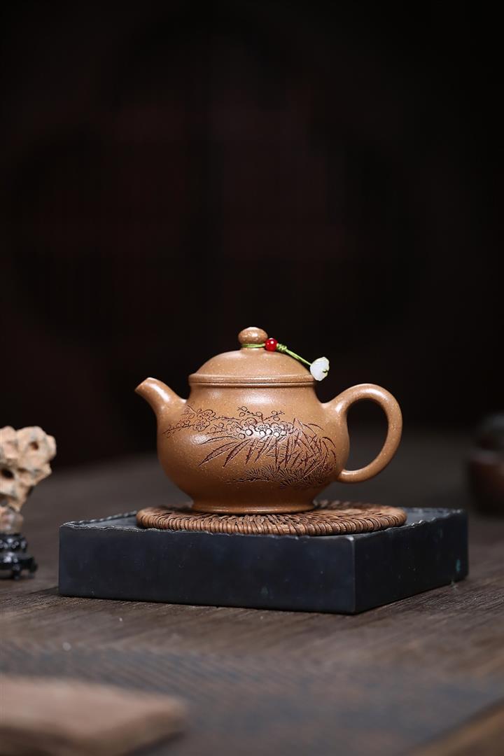 280cc原礦石黃松鶴延年竹節泡茶壺POT9439