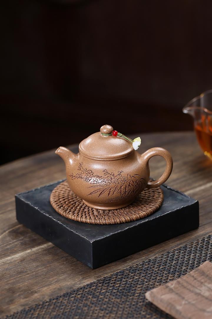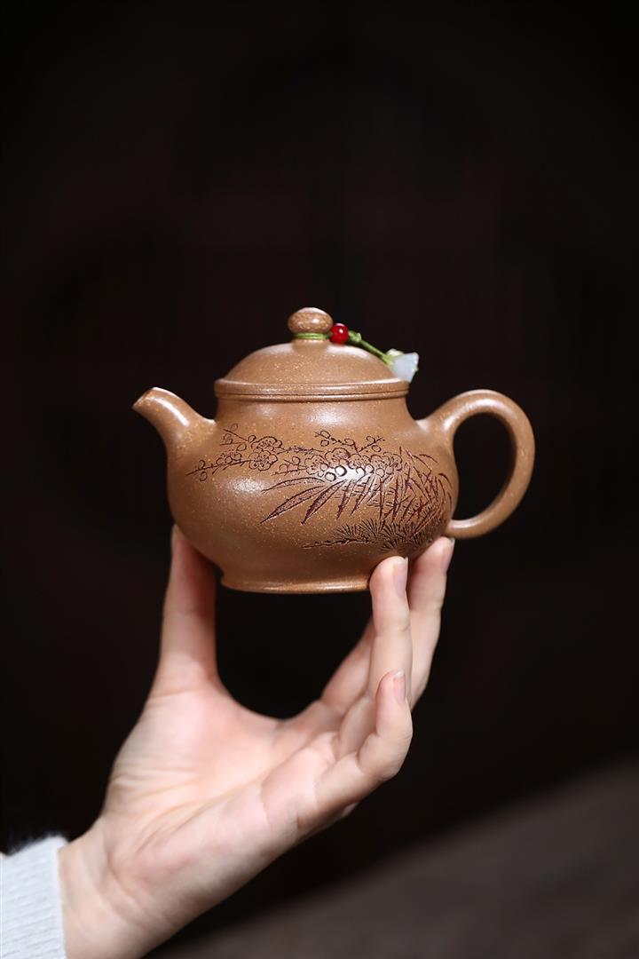 【作品介紹】此款壺形線條流暢,壺把,壺嘴,壺身壹氣呵成栩栩如生,是收藏把玩的好壺,泥料色澤古樸典雅,日久使用,漸露鋒芒,養成變化快,溫潤莊重,用其泡茶,使用的年代久,壺身就溫潤,泡出來的茶湯也就醇郁芳馨。