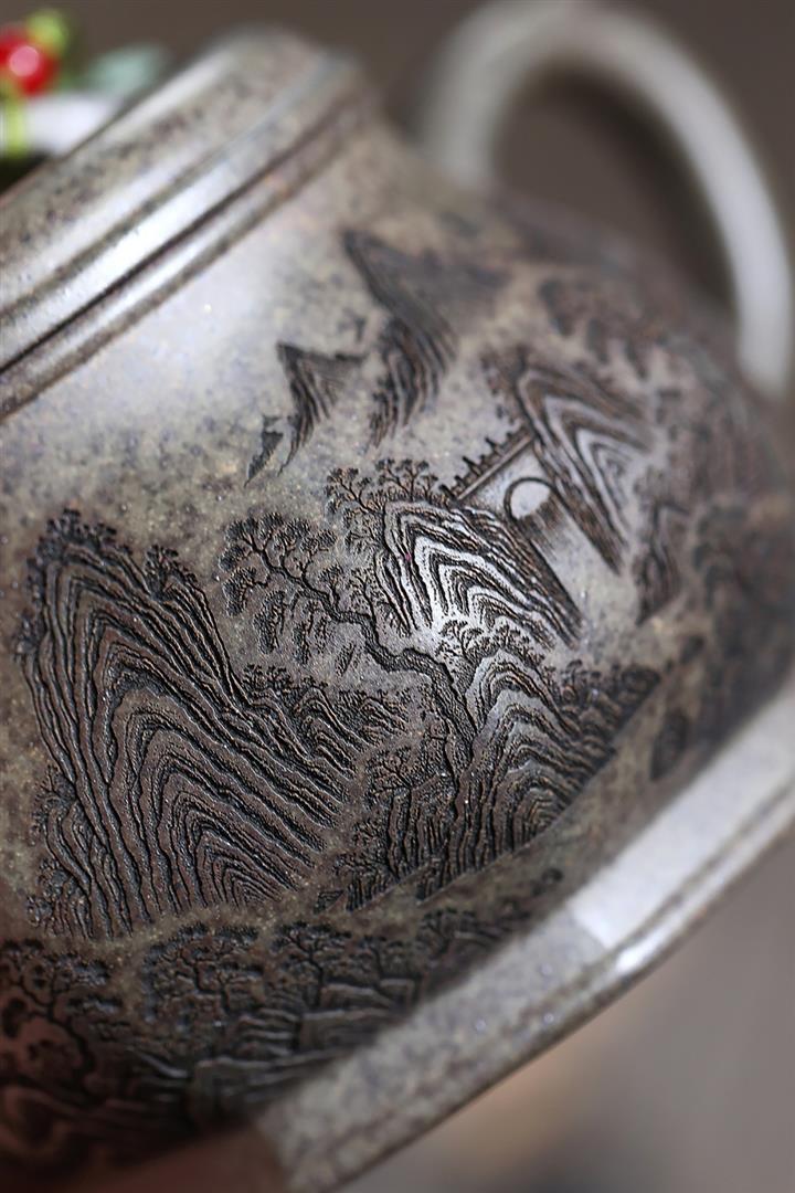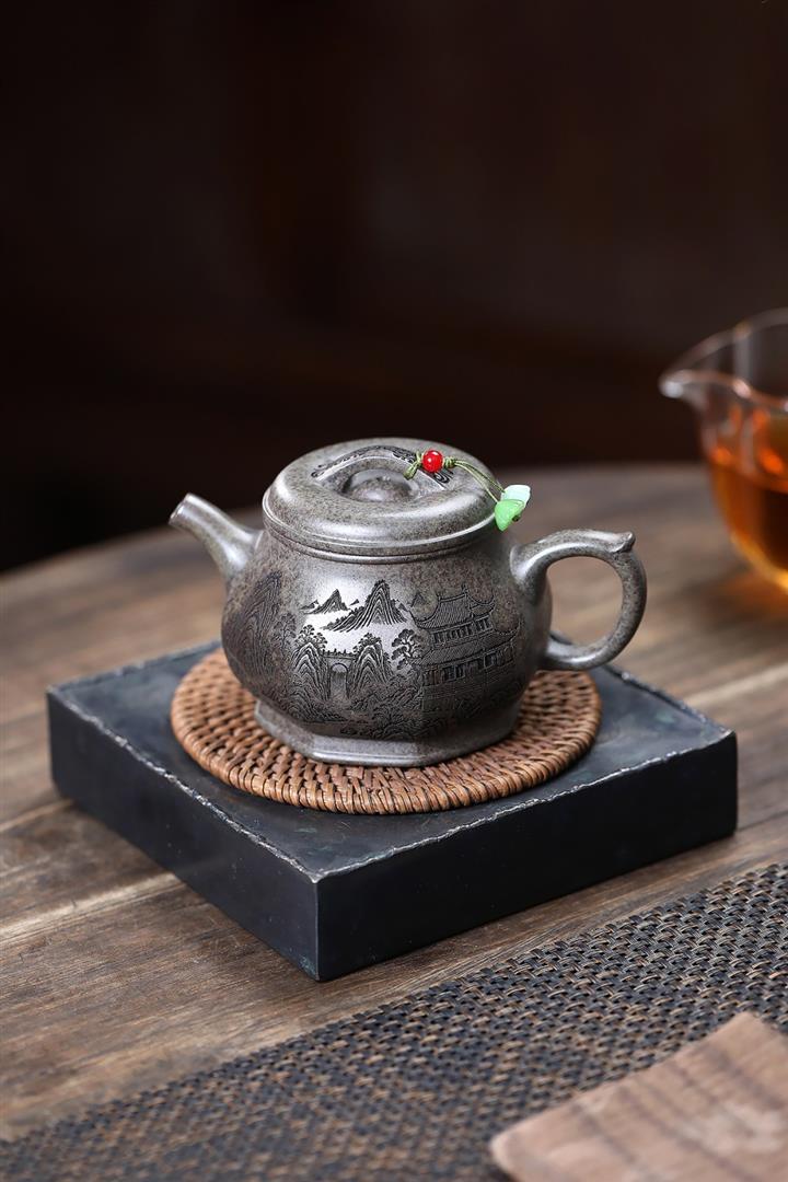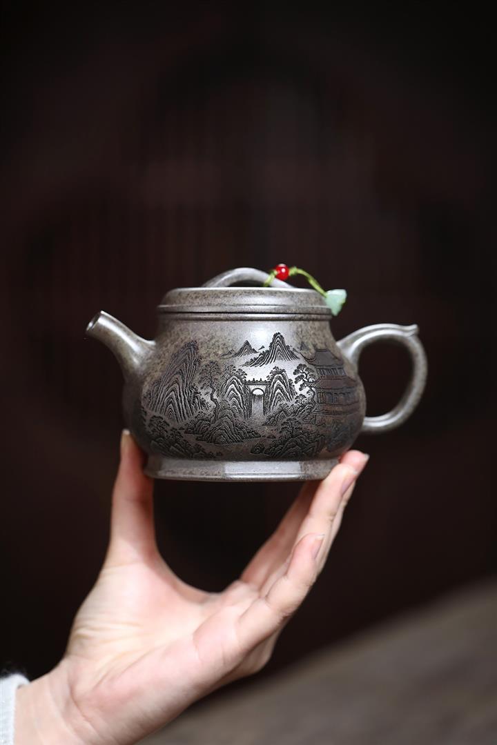 200cc原礦青灰段泥山水明爐泡茶壺POT9699