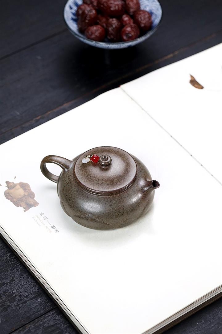 【泥料特點】砂土氣重,似淳實農民,日久使用,漸露鋒芒,養成變化,溫潤莊重。紫砂是壹種雙重氣孔結構的多孔性材質,氣孔微細,密度高。用紫砂壺沏茶,不失原味,且香不渙散,得茶之真香真味。紫砂使用越久,壺身色澤越發光亮照人,氣韻溫雅。紫砂壺長久使用器身會因撫摸擦拭,變得越發溫潤光澤。