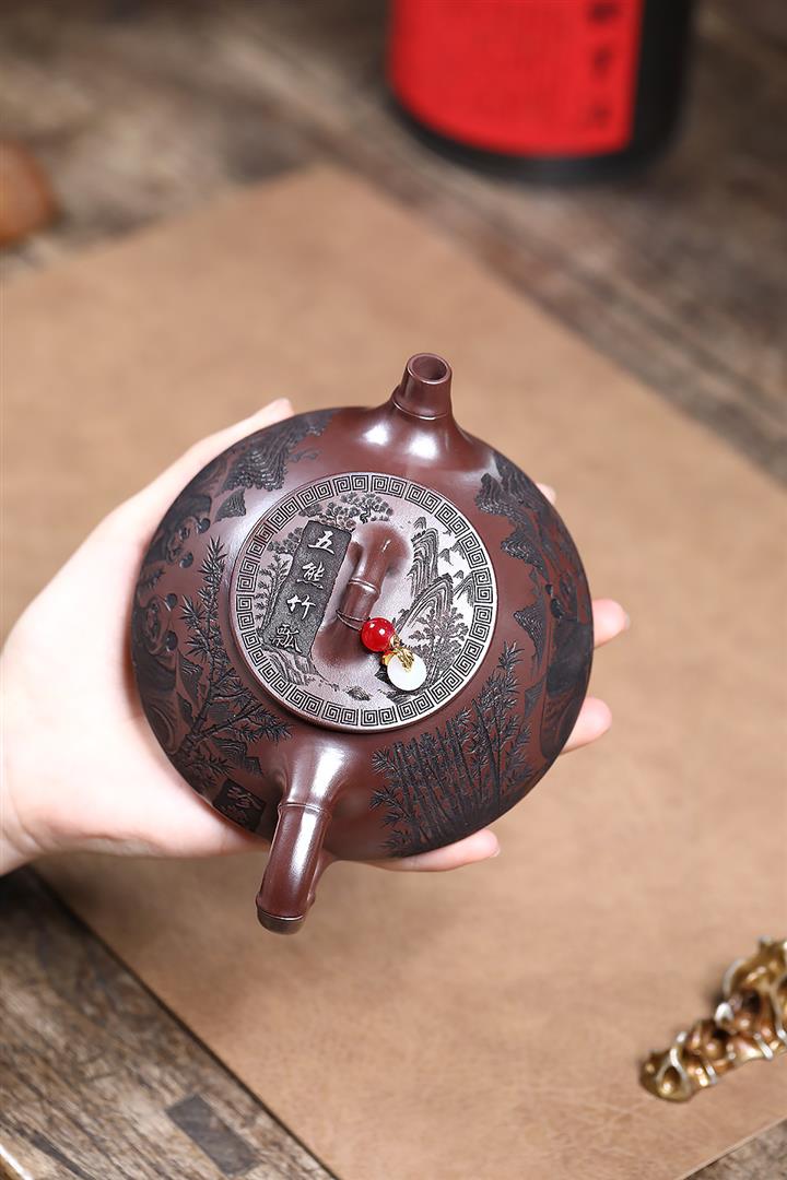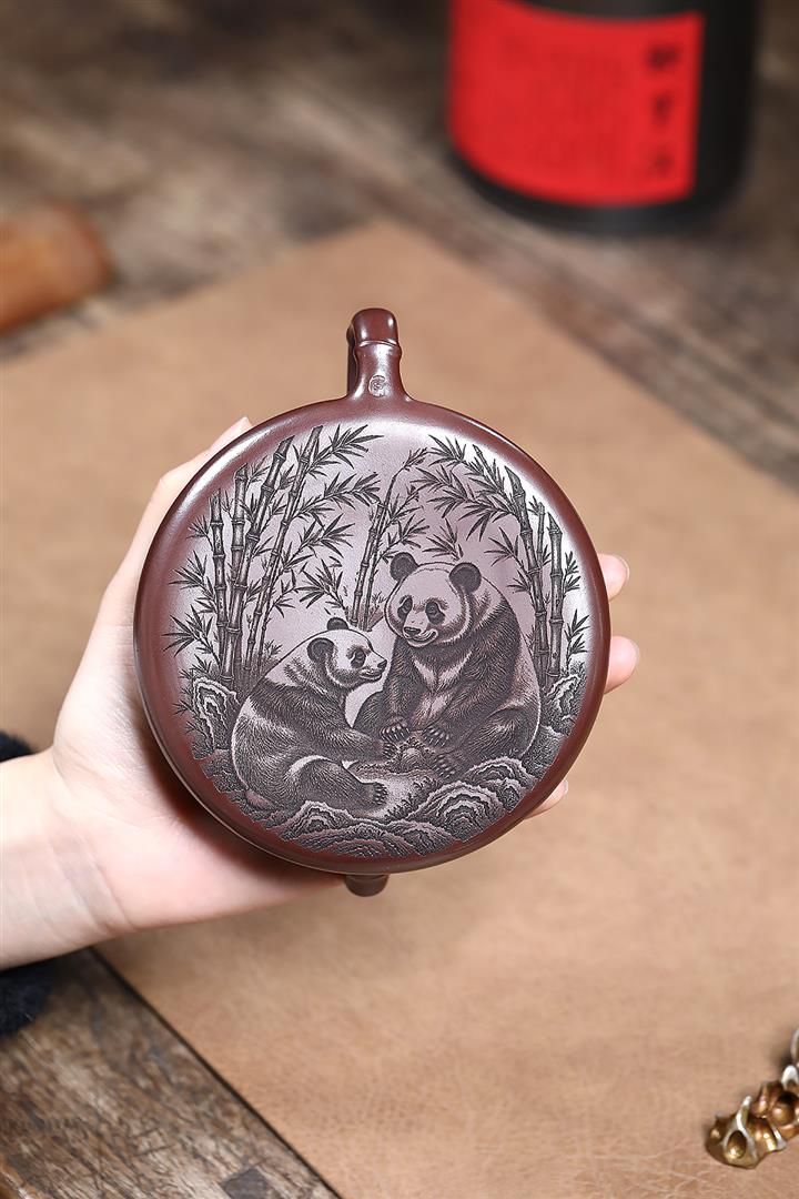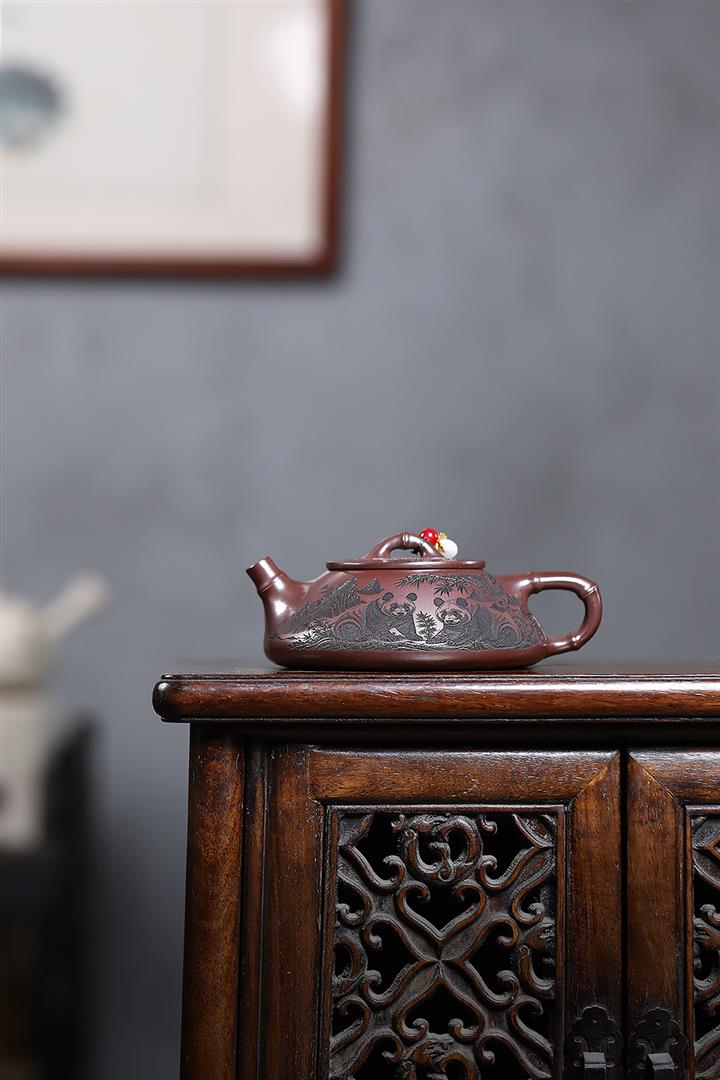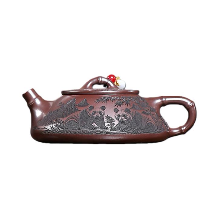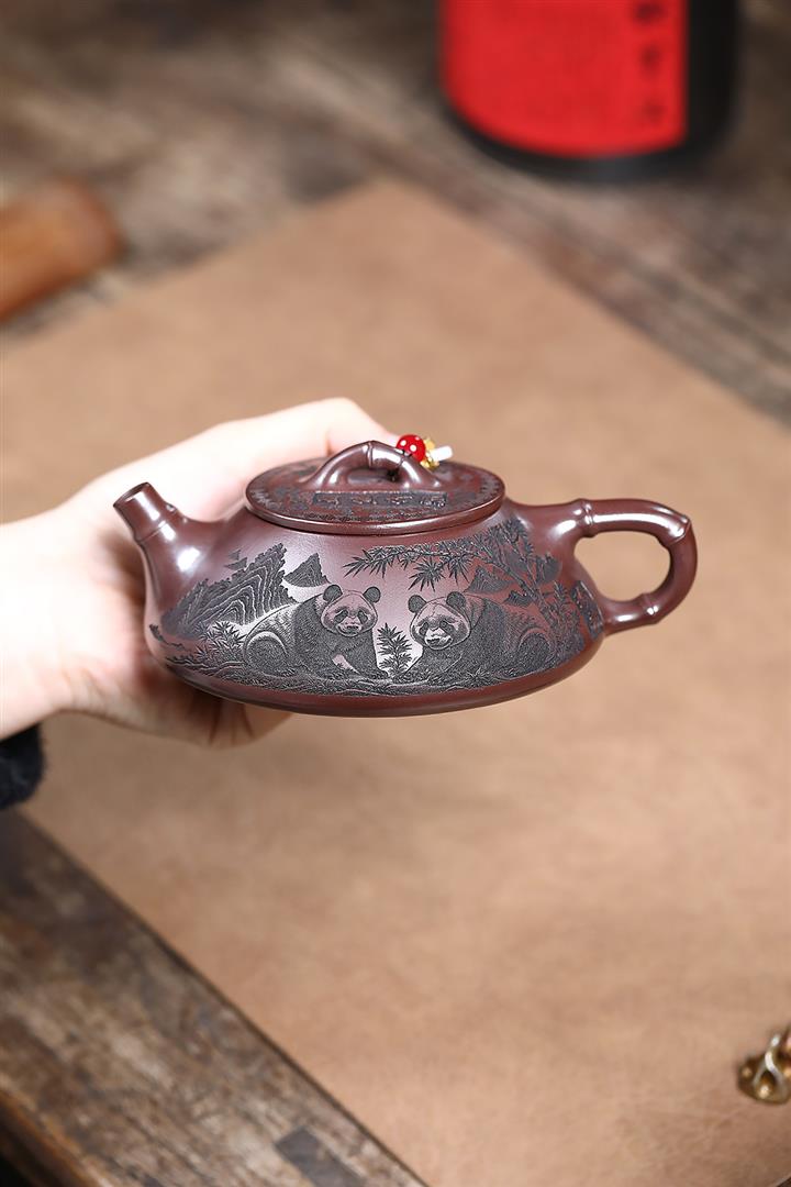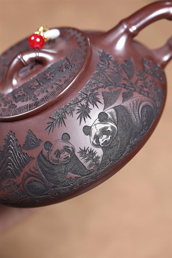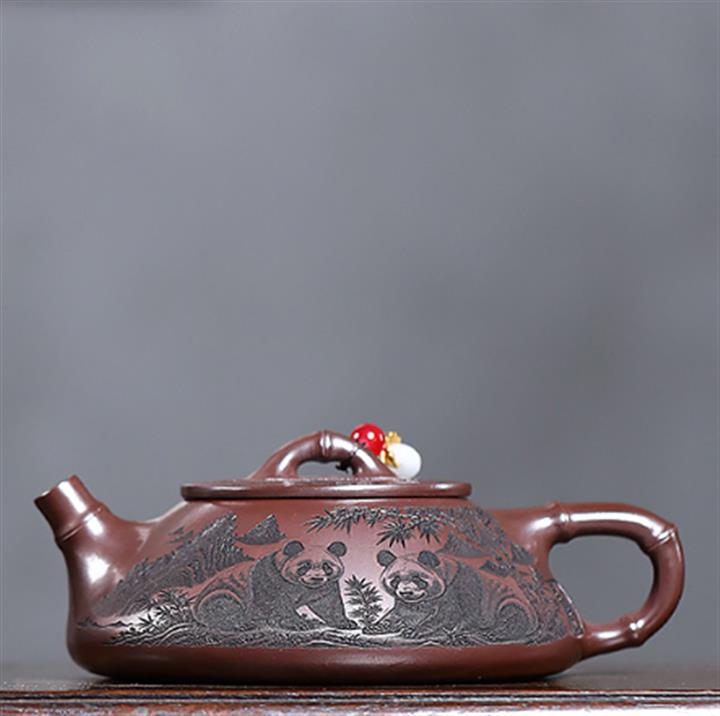 240cc原礦石紅刻繪熊貓竹瓢泡茶壺POT9161