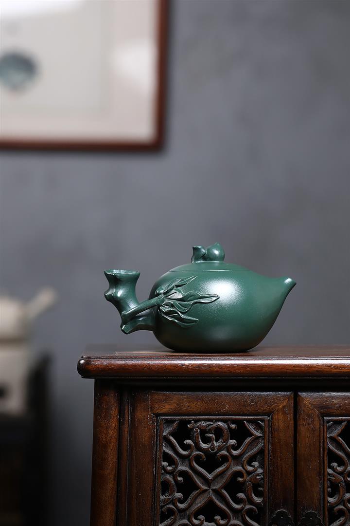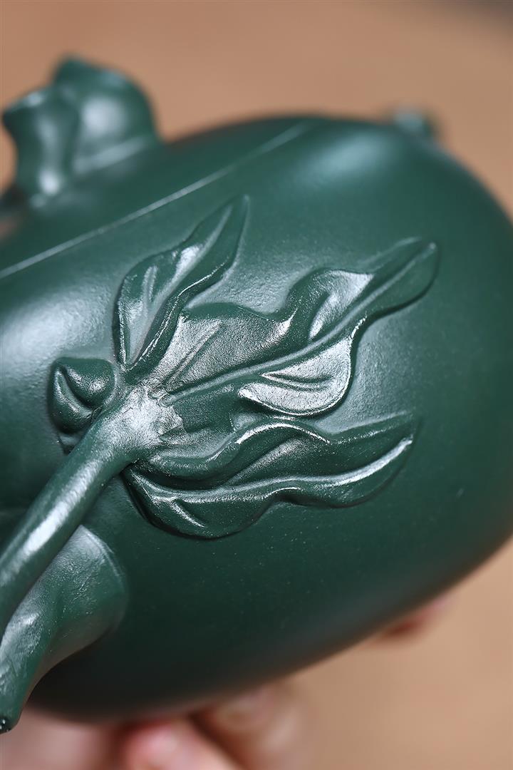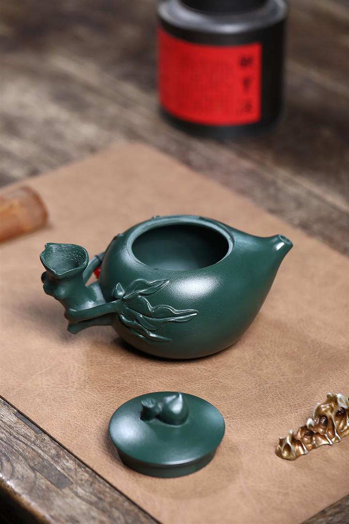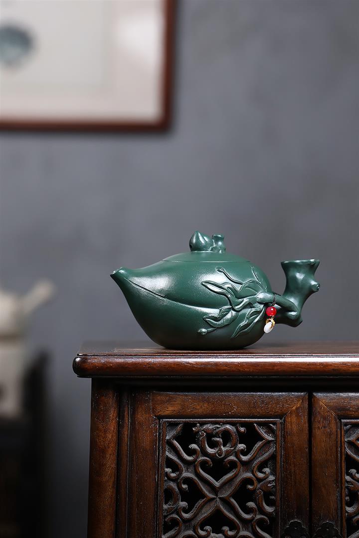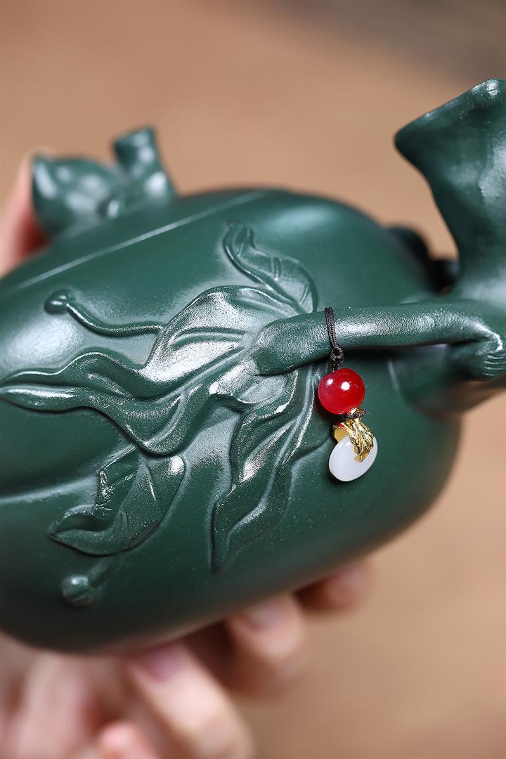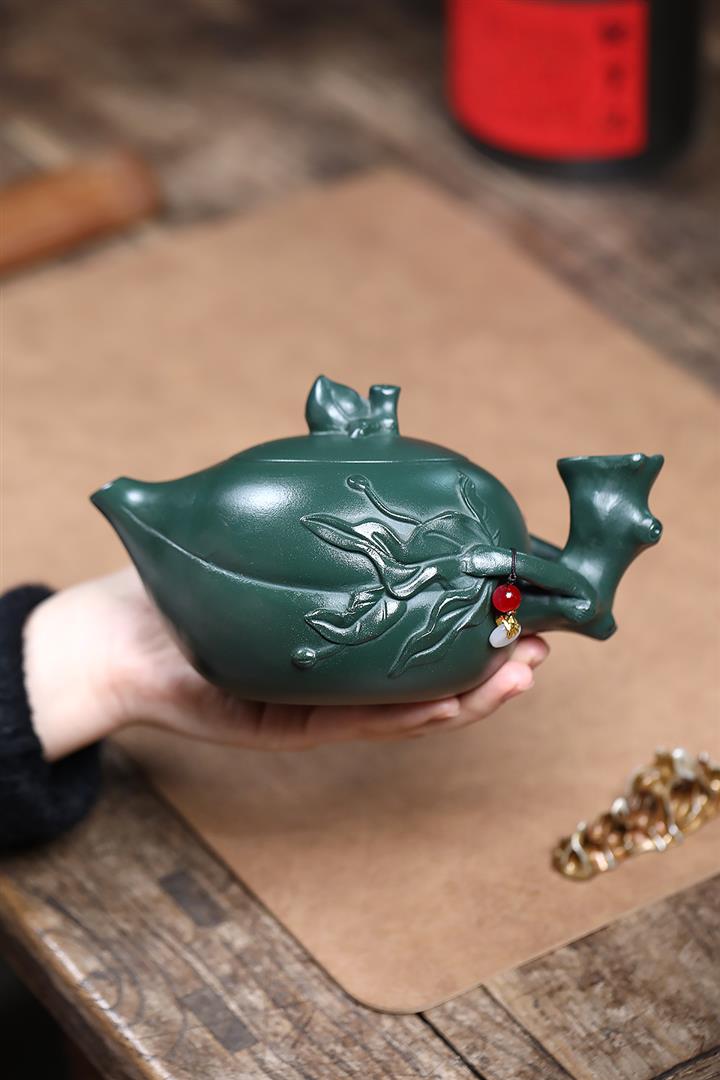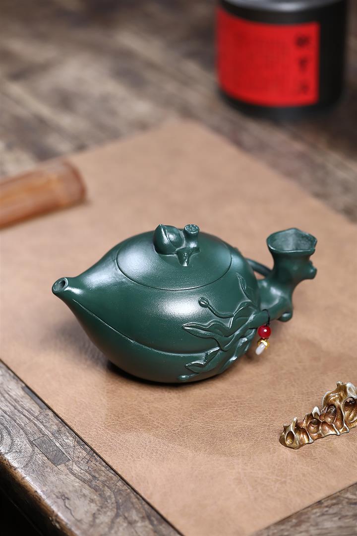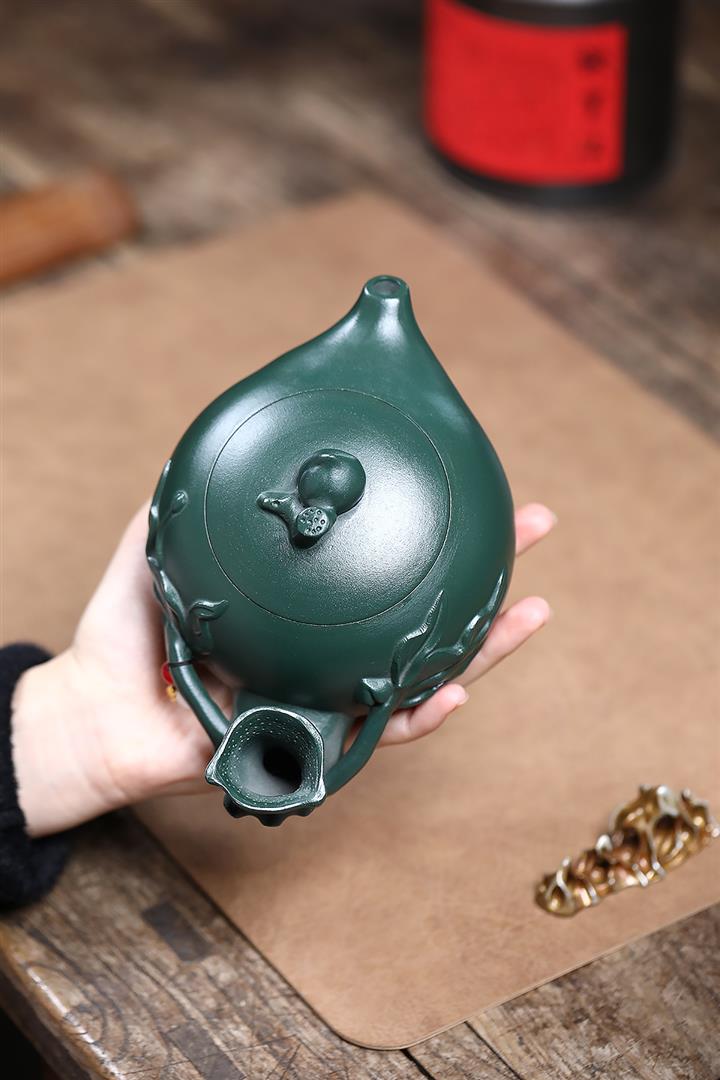 480cc原礦墨綠泥唐羽壽桃泡茶壺POT9167