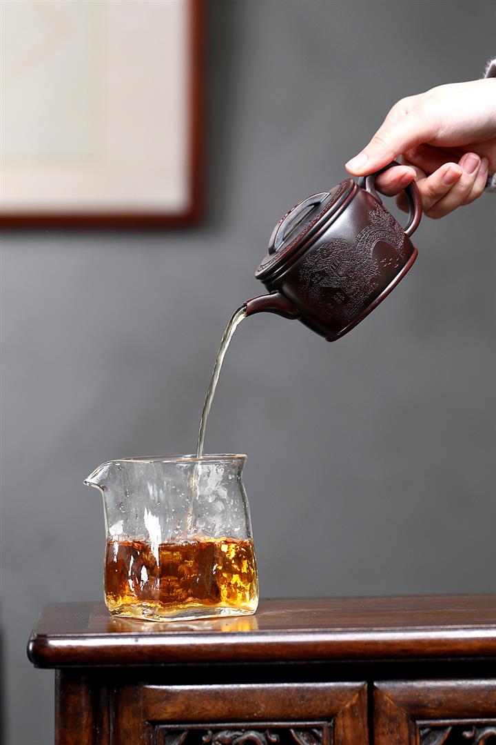 【泥料特點】砂土氣重,似淳實農民,日久使用,漸露鋒芒,養成變化,溫潤莊重。紫砂是壹種雙重氣孔結構的多孔性材質,氣孔微細,密度高。用紫砂壺沏茶,不失原味,且香不渙散,得茶之真香真味。紫砂使用越久,壺身色澤越發光亮照人,氣韻溫雅。紫砂壺長久使用器身會因撫摸擦拭,變得越發溫潤光澤。