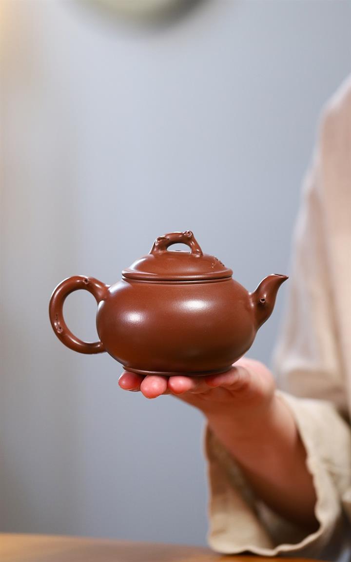 【作品介紹】此款壺形線條流暢,壺把,壺嘴,壺身壹氣呵成栩栩如生,是收藏把玩的好壺,泥料色澤古樸典雅,日久使用,漸露鋒芒,養成變化快,溫潤莊重,用其泡茶,使用的年代久,壺身就溫潤,泡出來的茶湯也就醇郁芳馨。