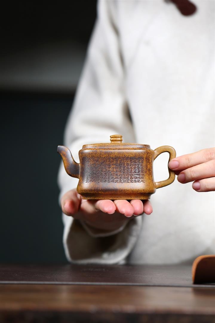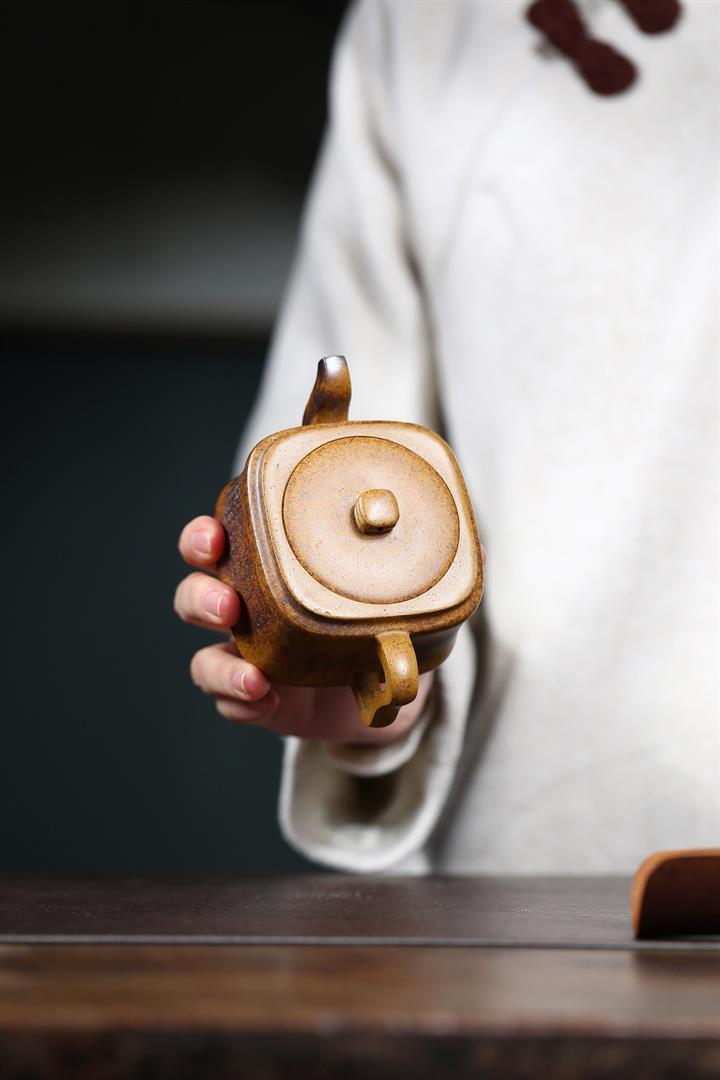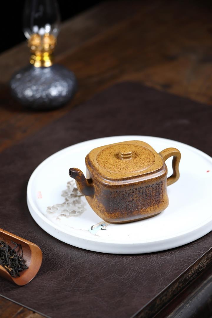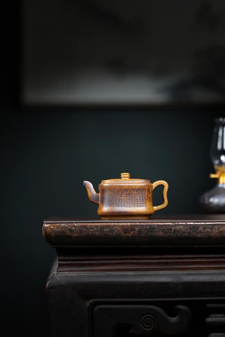 200cc原礦龍骨金砂柴燒金方茶壺POT9241