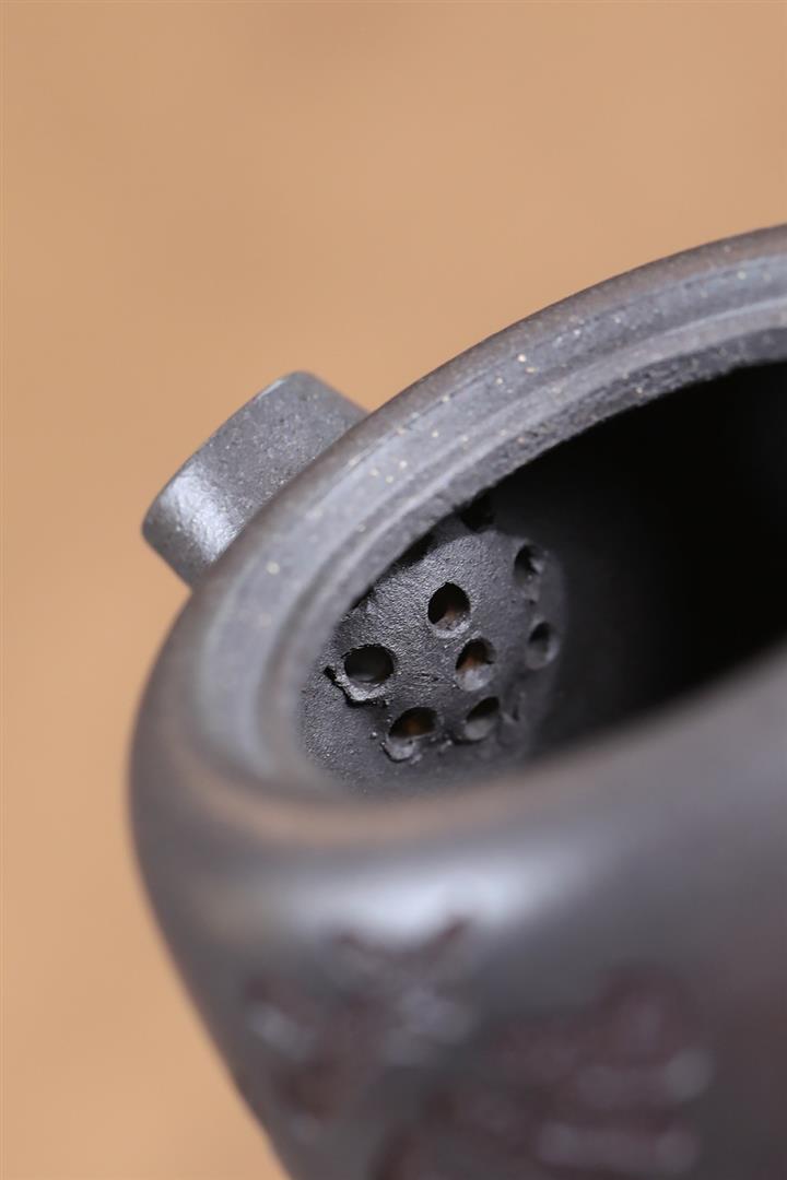 【泥料特點】砂土氣重,似淳實農民,日久使用,漸露鋒芒,養成變化,溫潤莊重。紫砂是壹種雙重氣孔結構的多孔性材質,氣孔微細,密度高。用紫砂壺沏茶,不失原味,且香不渙散,得茶之真香真味。紫砂使用越久,壺身色澤越發光亮照人,氣韻溫雅。紫砂壺長久使用器身會因撫摸擦拭,變得越發溫潤光澤。